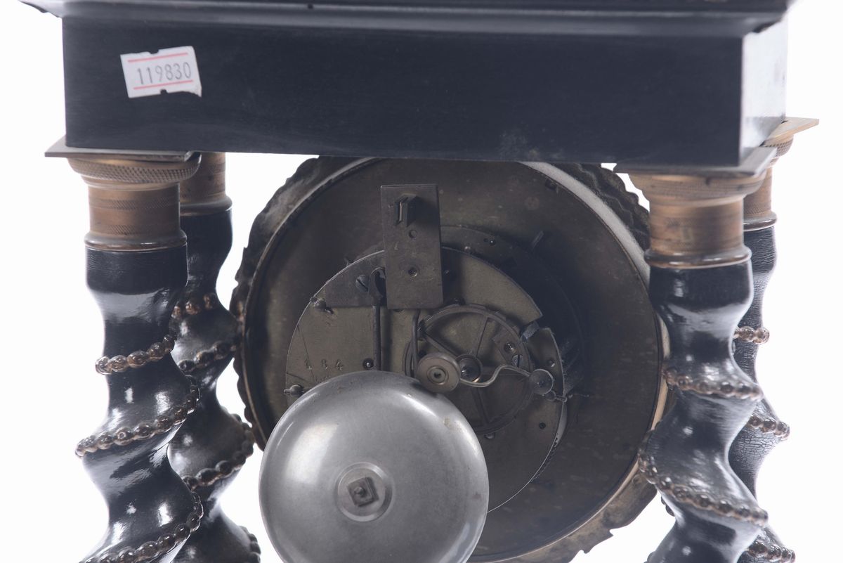 Orologio con colonne a torciglione in legno ebanizzato, XIX secolo
