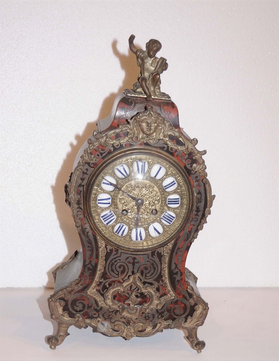 Orologio tipo boulle lastronato in tartaruga