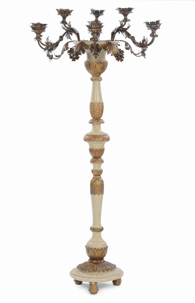 base circolare poggiante su piedini dorati fogliacei, fusto tornito, altezza cm 190