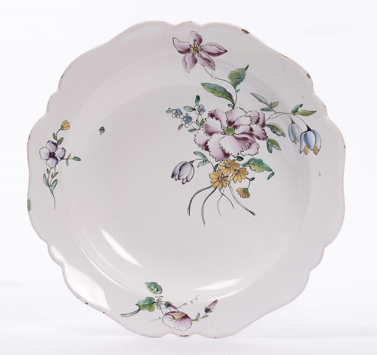 Piatto in maiolica a decoro policromo floreale, XIX secolo