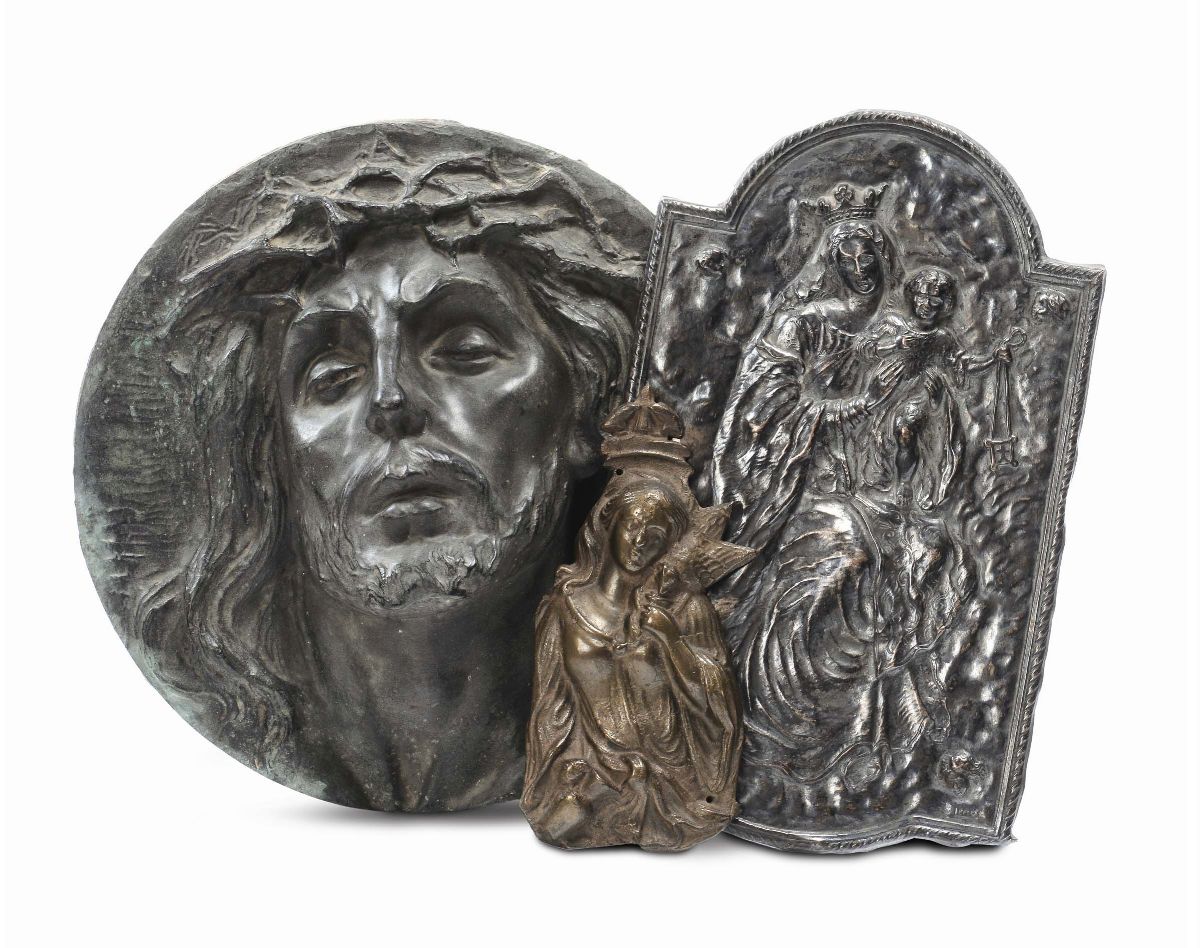nel lotto anche testa di Cristo moderna in bronzo, Madonna in bronzo
