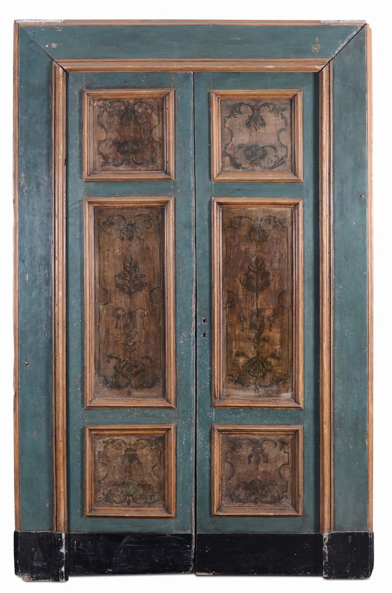 Porta a due ante in stile Luigi XV completa di mostra laccata e dipinta, Napoli XVIII secolo