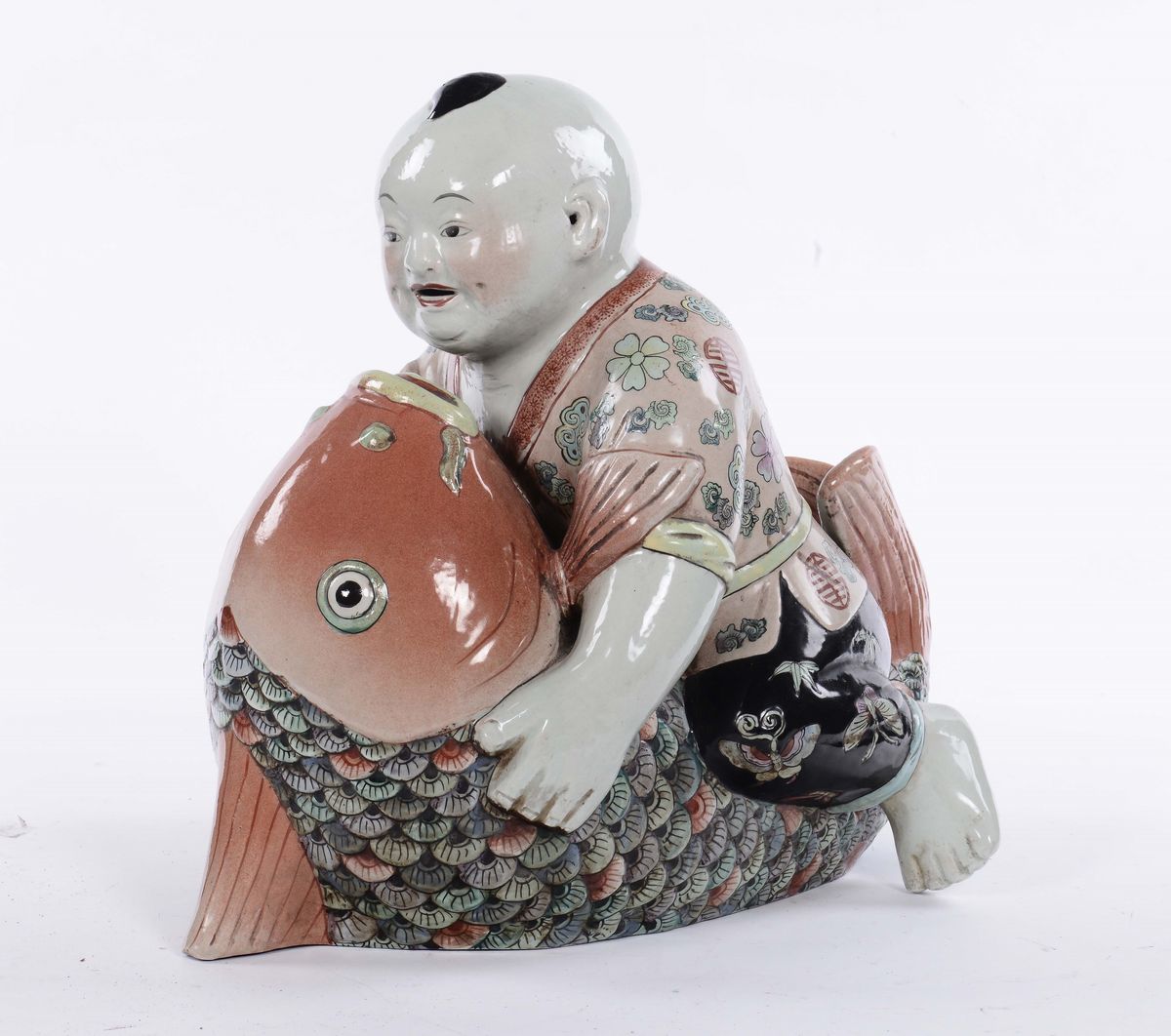 Putto giapponese con pesce in porcellana, XIX secolo