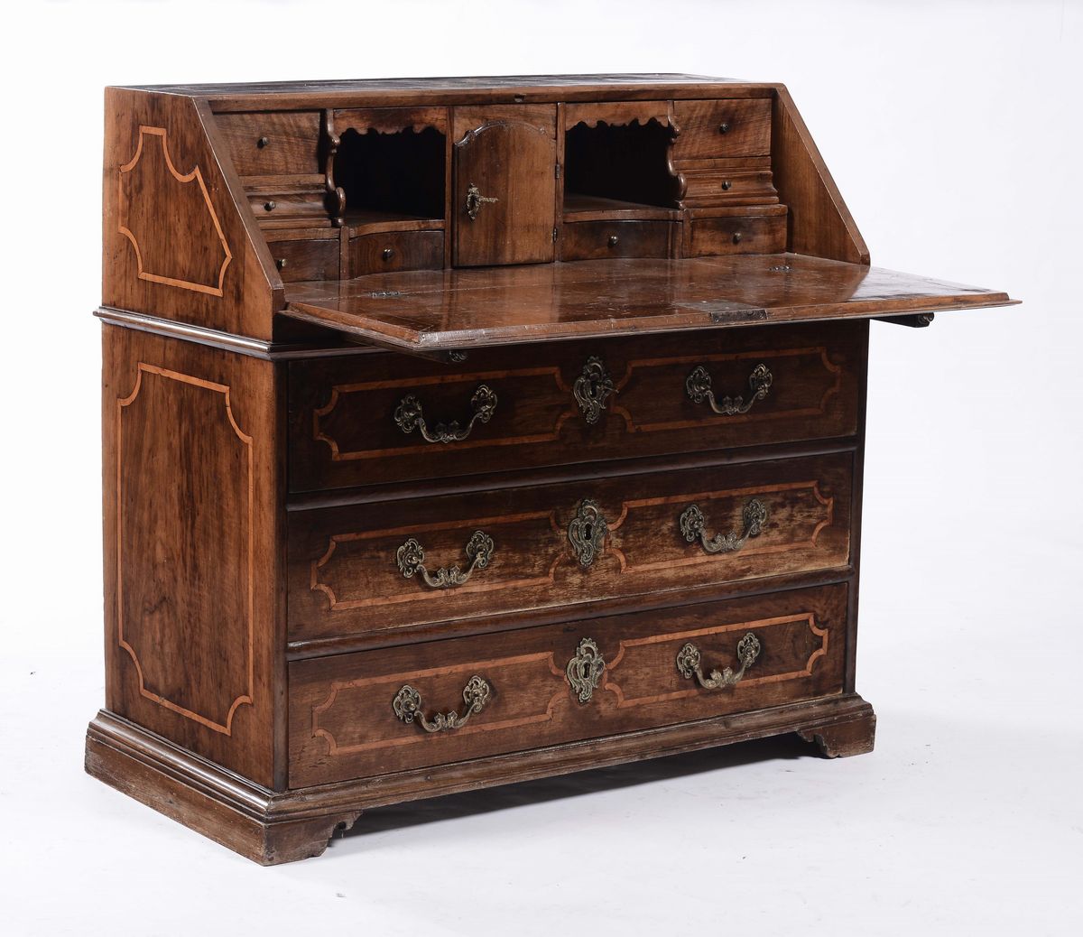 Ribalta a tre cassetti lastronata e filettata, XVIII secolo