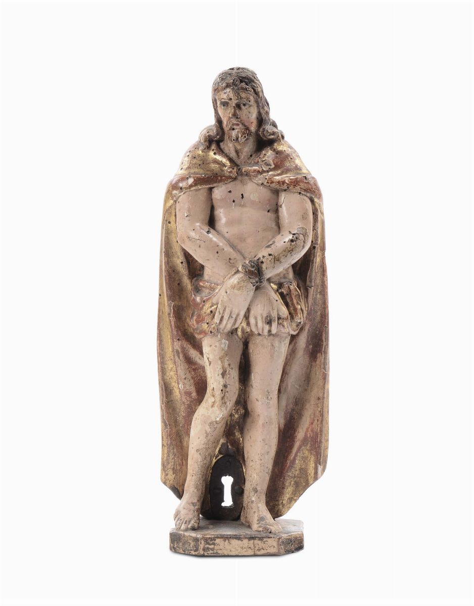 Scultura in legno laccato raffigurante Cristo alla colonna, XVIII secolo