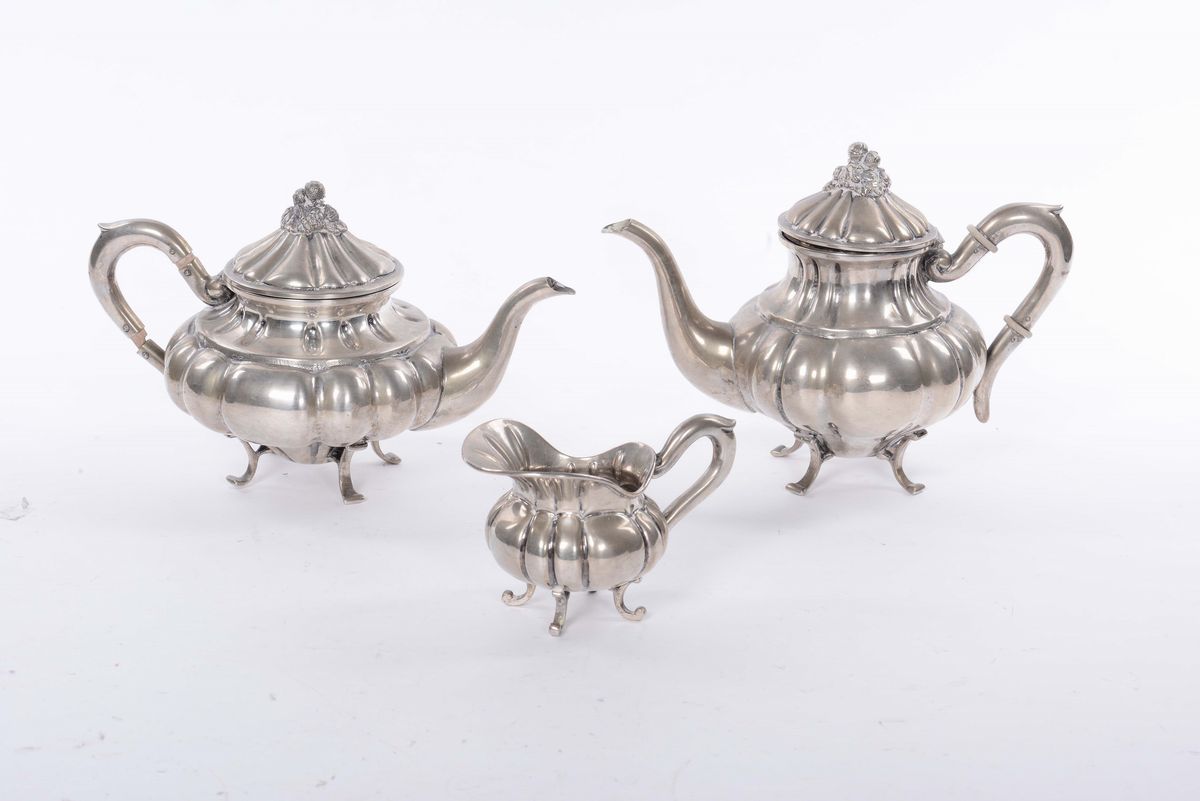 composto da teiera, caffettiera e lattiera, gr. 1100 circa