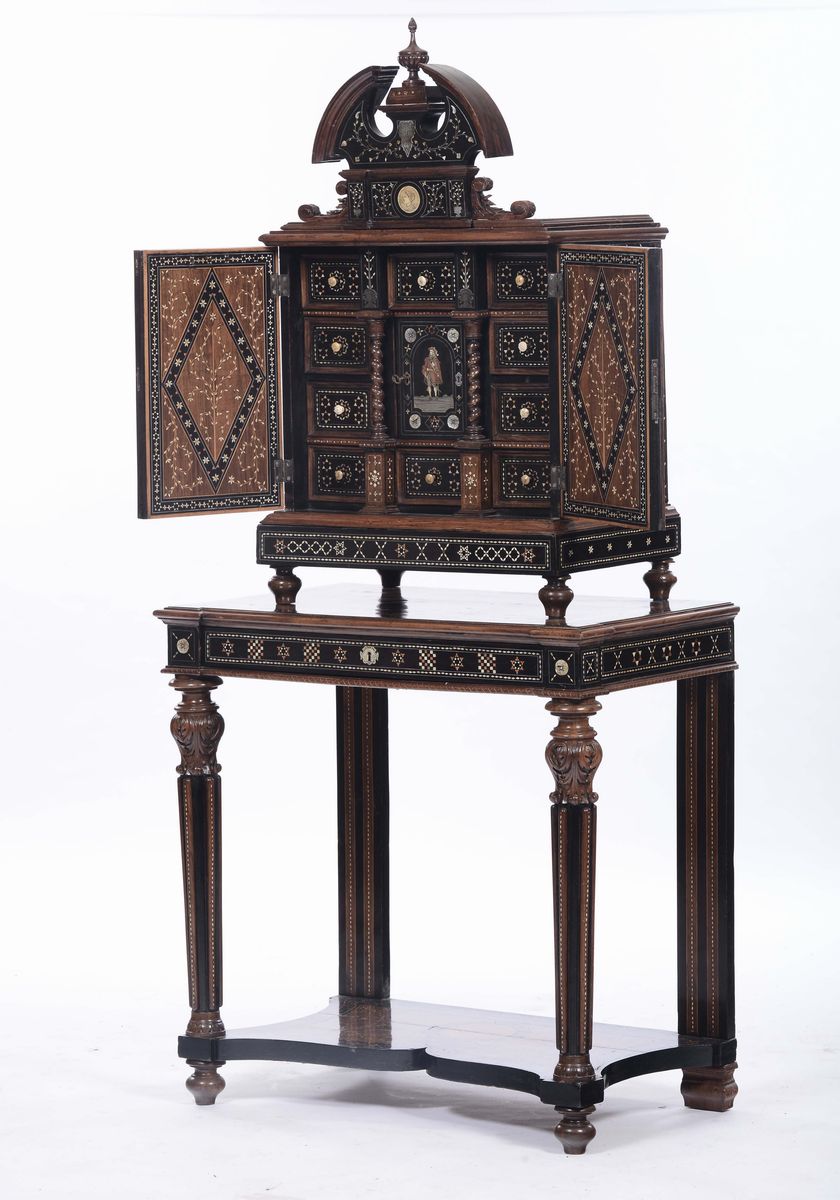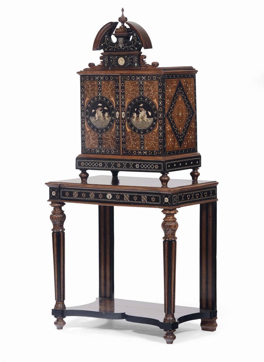 Stipo interamente lastronato ed intarsiato in essenze pregiate, XIX secolo