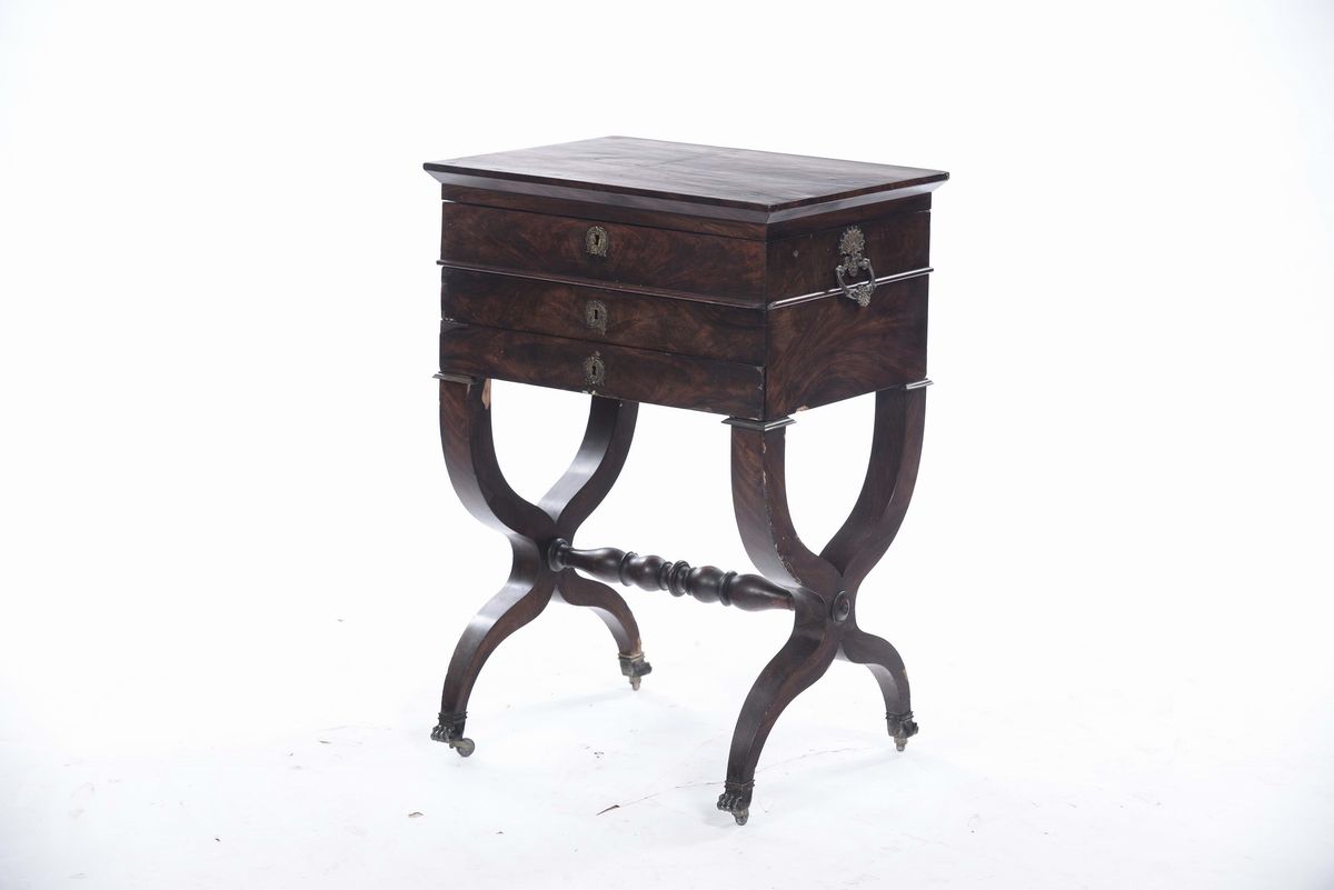 Tavolino da lavoro lastronato, XIX secolo