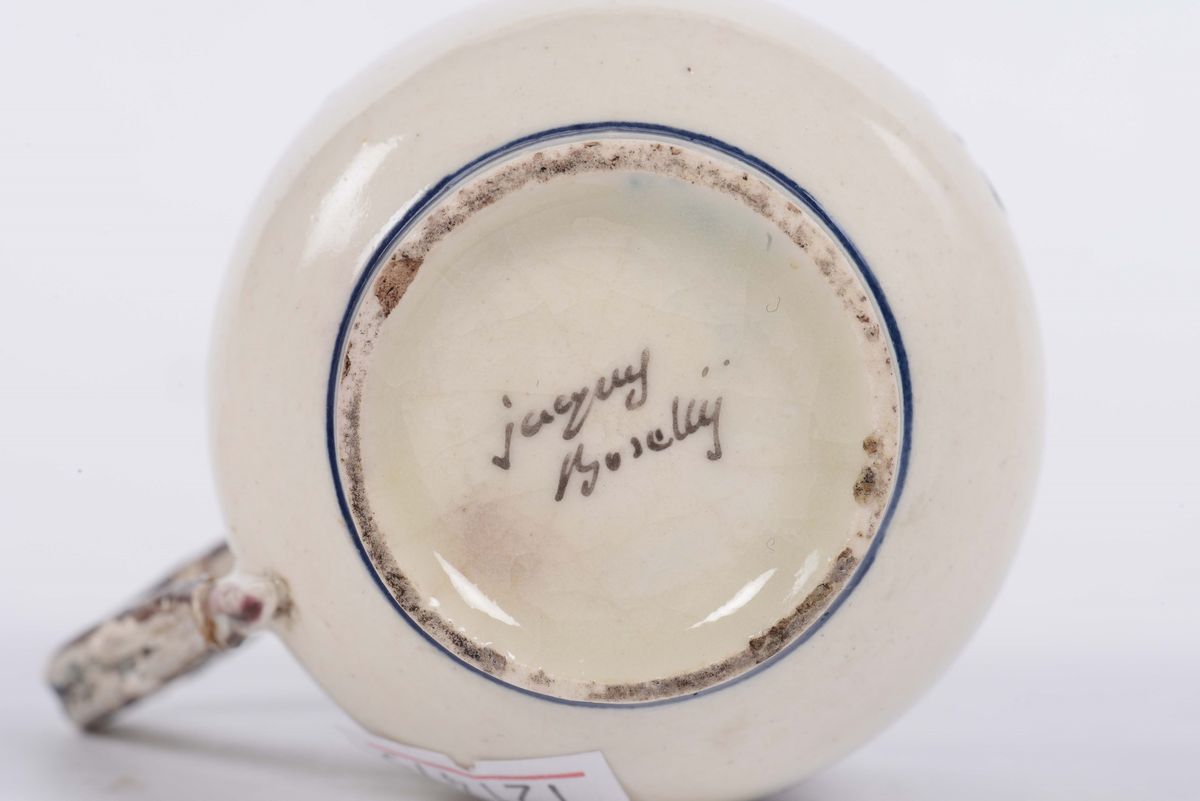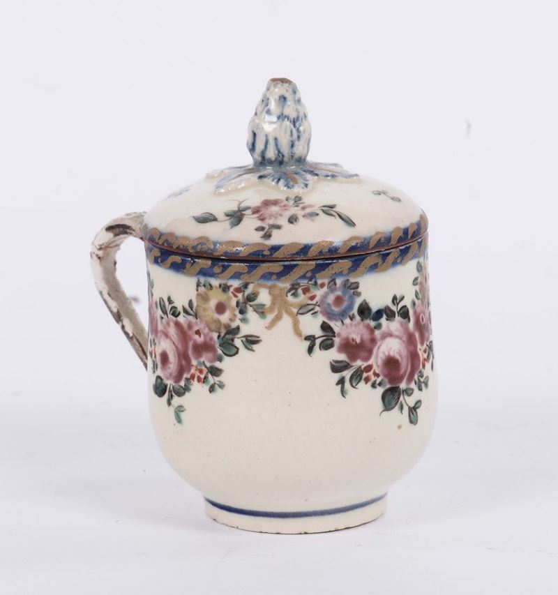 Tazzina con coperchio in terraglia a decoro floreale,marcata Boselli