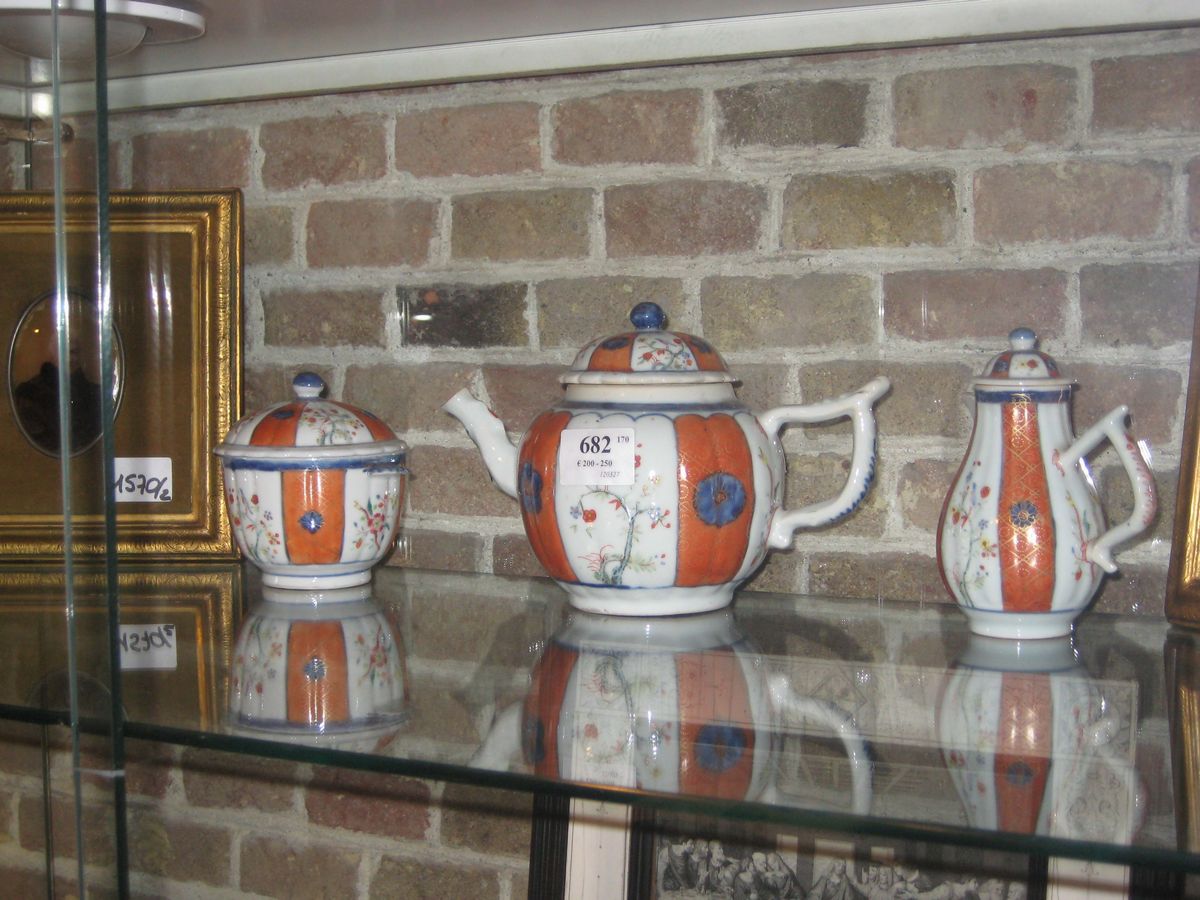 Teiera, caffettiera e zuccheriera in porcellana, Cina XIX secolo