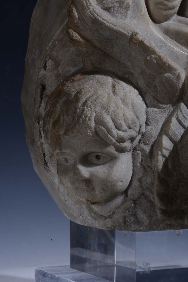 stemma in marmo bianco, altezza cm 50 (mancanze)