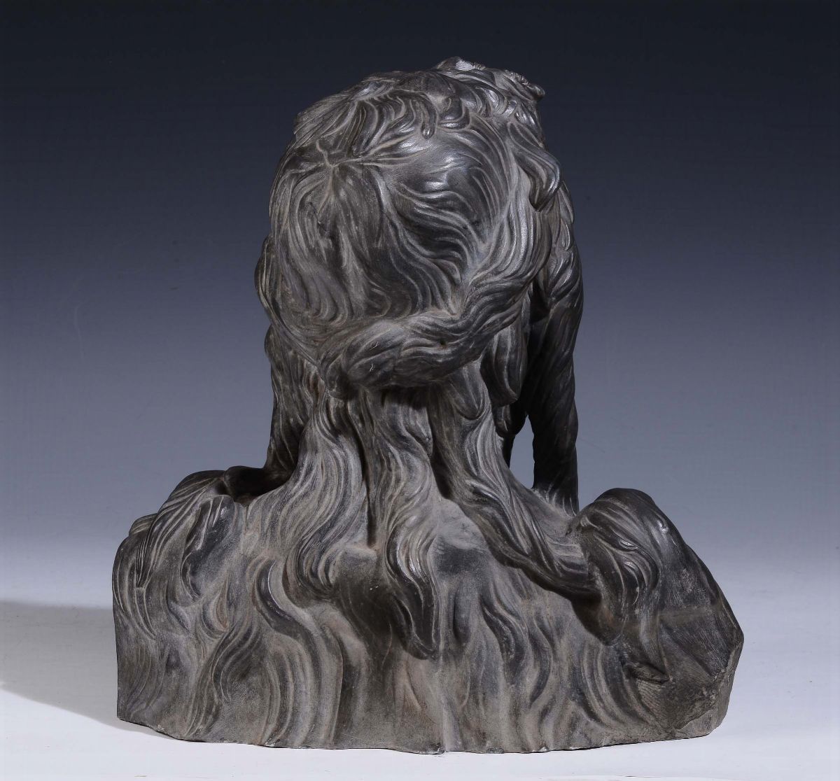 busto in marmo grigio bardiglio, altezza cm 48, larghezza cm 50