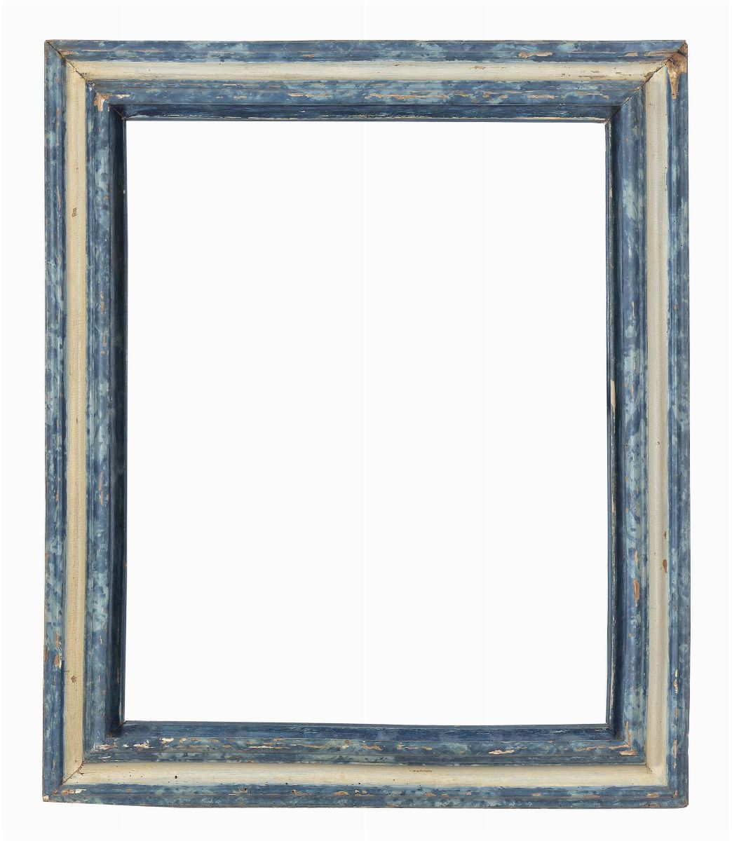 fascia a fondo crema, battuta e profilo marmorizzati in azzurro, cm 73x58 (95x79)