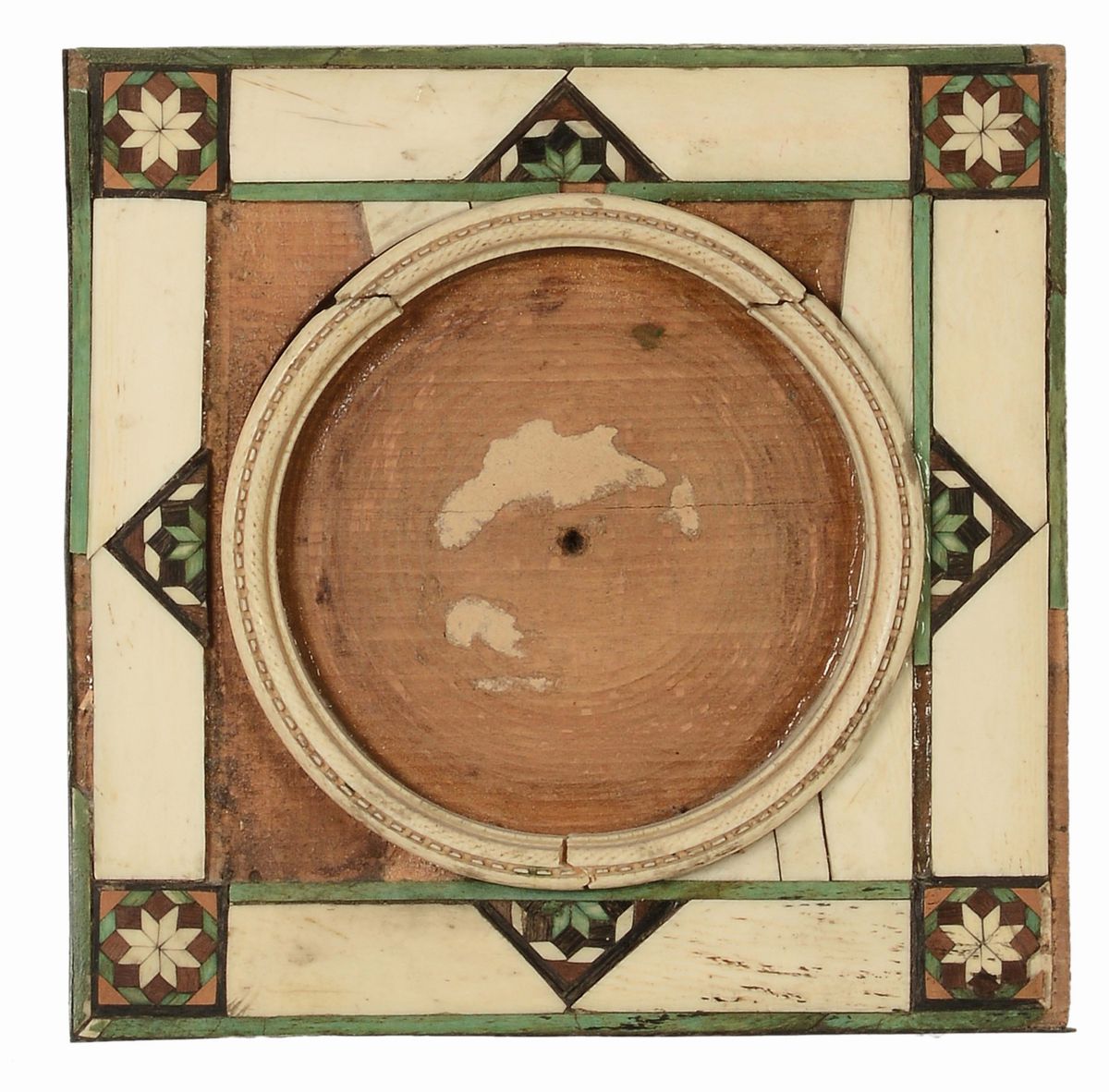 Tre piccole cornici intarsiate in avorio e altre essenze, XVII secolo