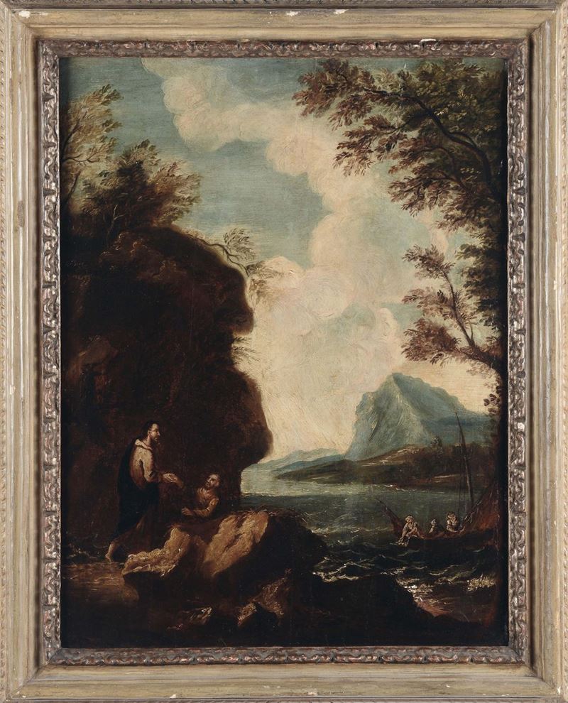 Scuola Napoletana del XVII secolo Gesù e la Samaritana al pozzo Pesca miracolosa