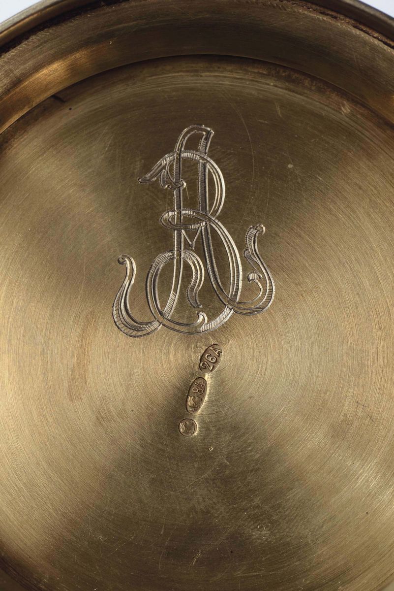 Bicchiere (Kovsh) con cucchiaio in argento e smalti cloisonnè. Punzoni russi in uso dal 1908 al 1917