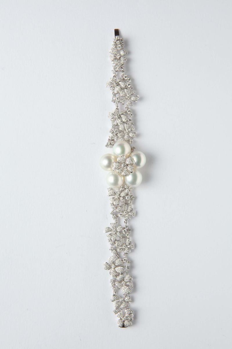 Bracciale con diamanti e perle fresh water