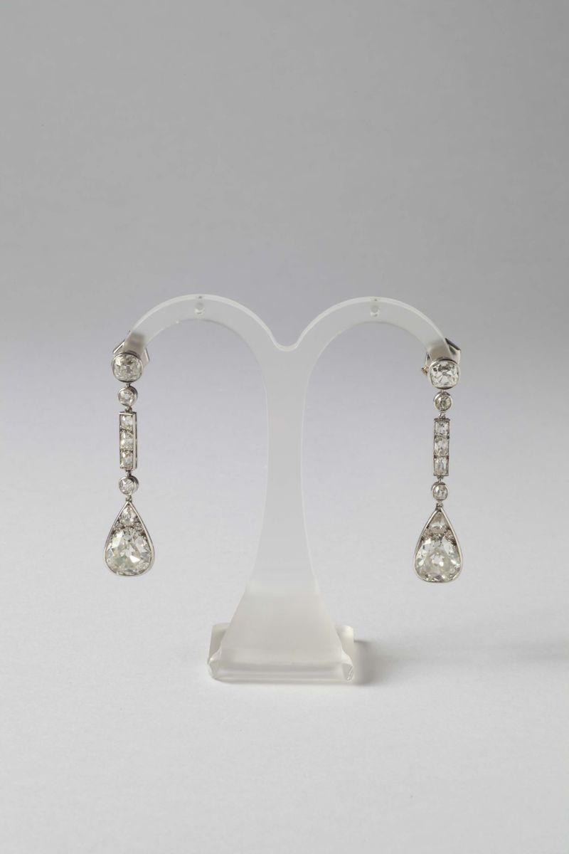 Orecchini pendenti con diamanti di vecchio taglio