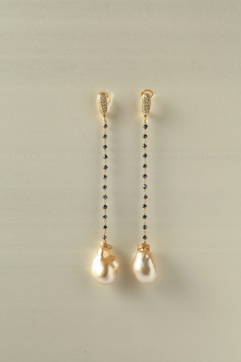 Orecchini pendenti con perle australiane gold, diamanti e zaffiri