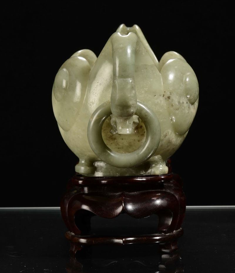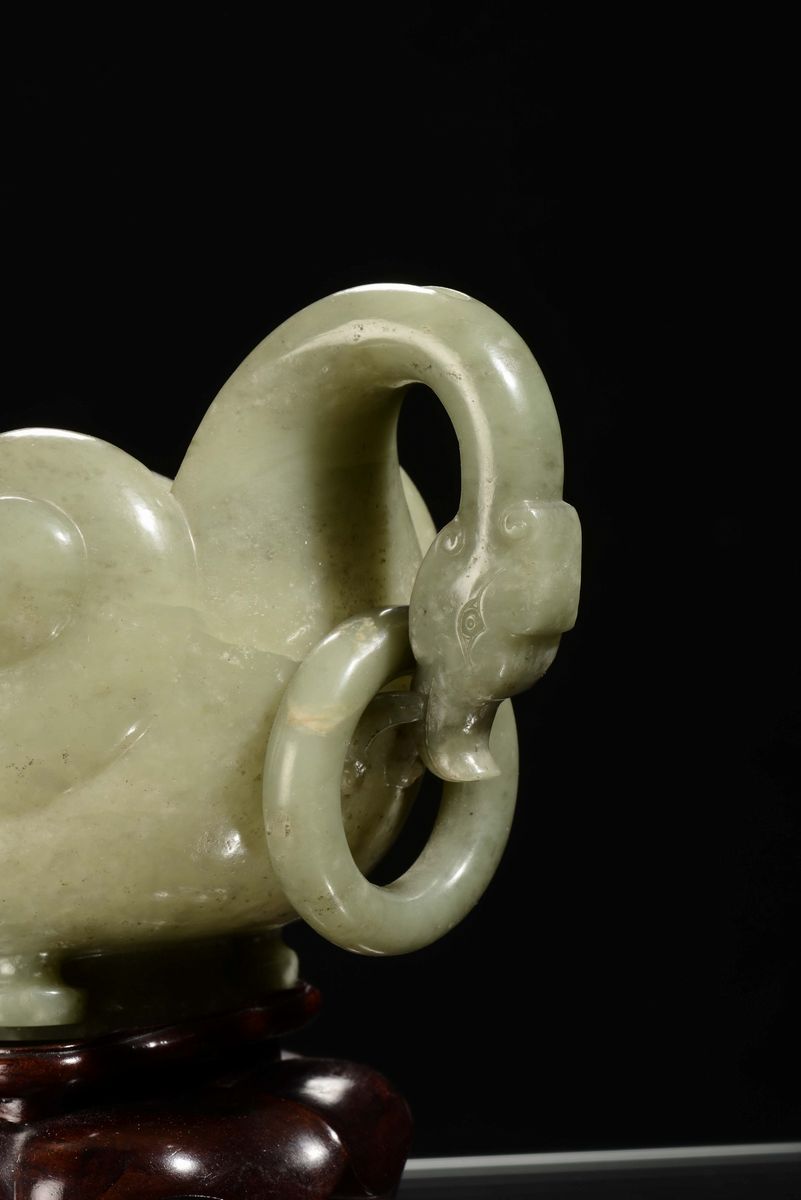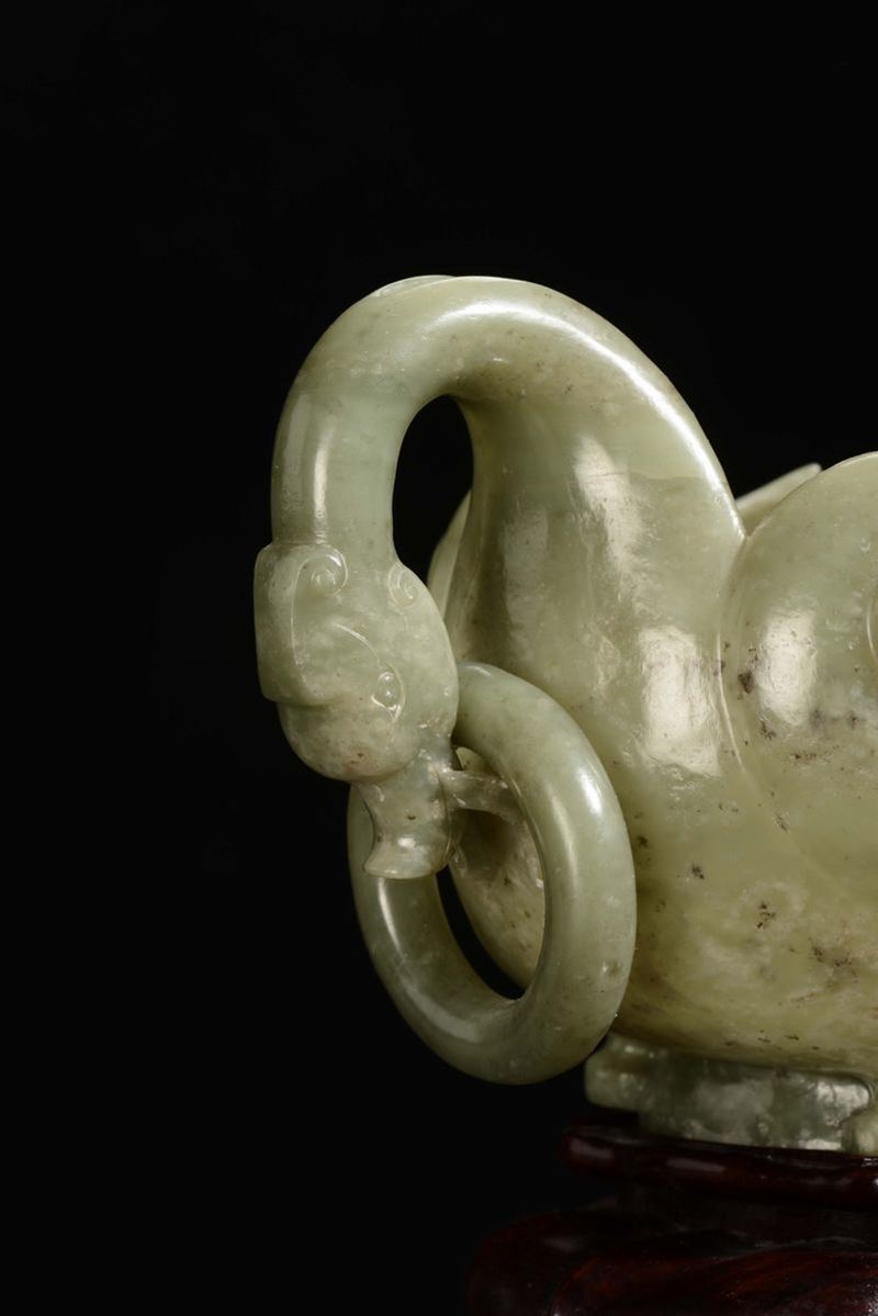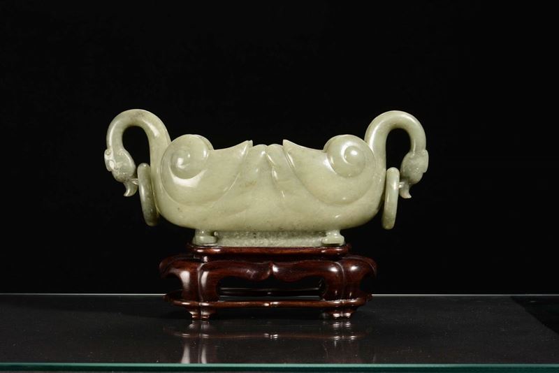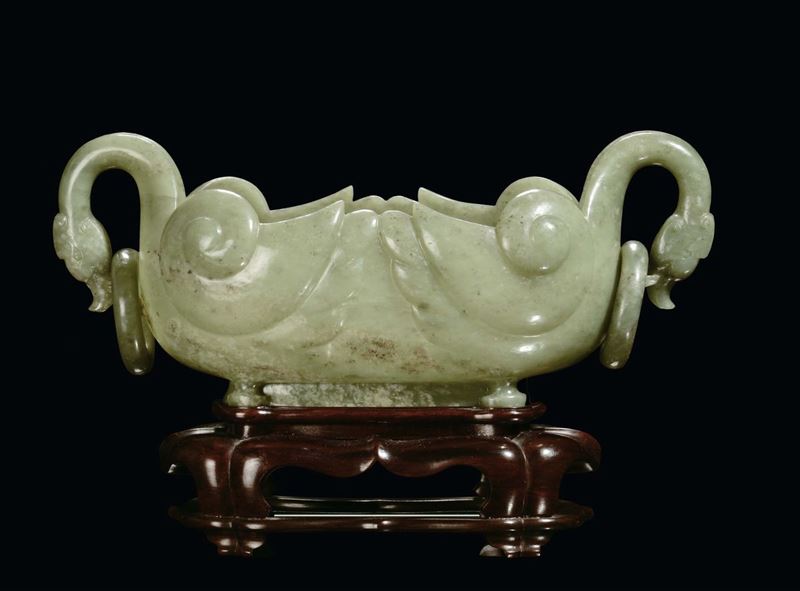 Cestino in giada verde celadon con manici a guisa di cigno, Cina, Dinastia Qing, XIX secolo
