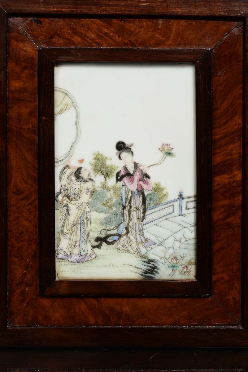 Coppia di placche in porcellana policroma raffigurante scene con figure orientali, Cina, Dinastia Qing, Periodo Yongzheng [..]