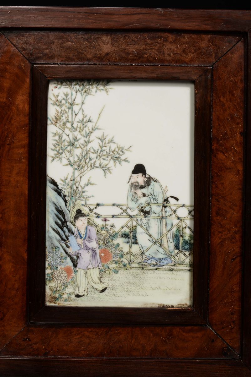 Coppia di placche in porcellana policroma raffigurante scene con figure orientali, Cina, Dinastia Qing, Periodo Yongzheng (1723-1735)