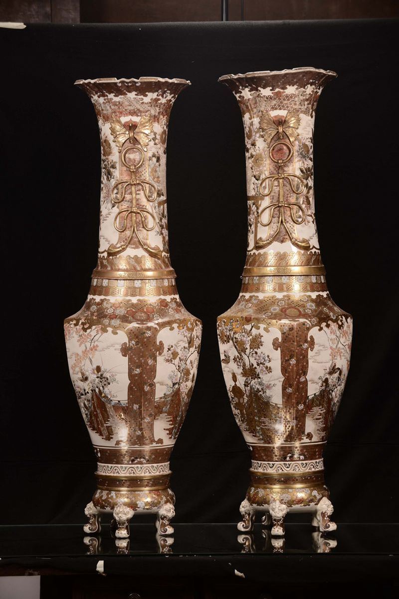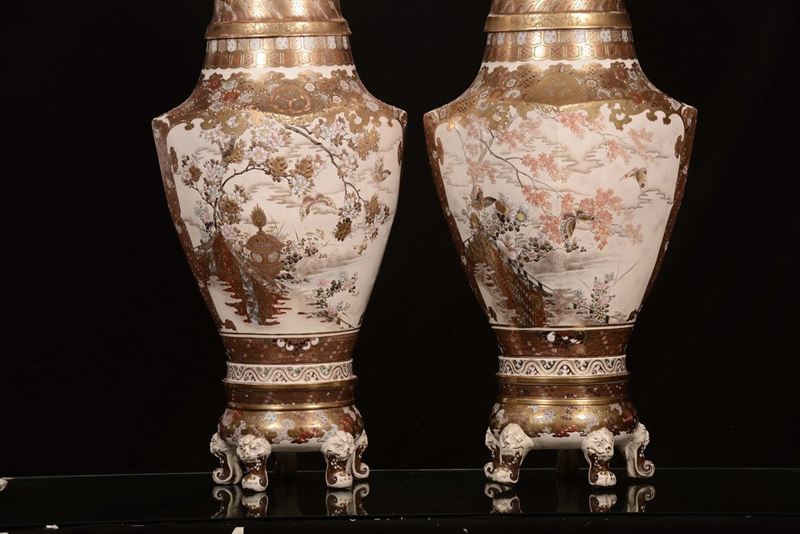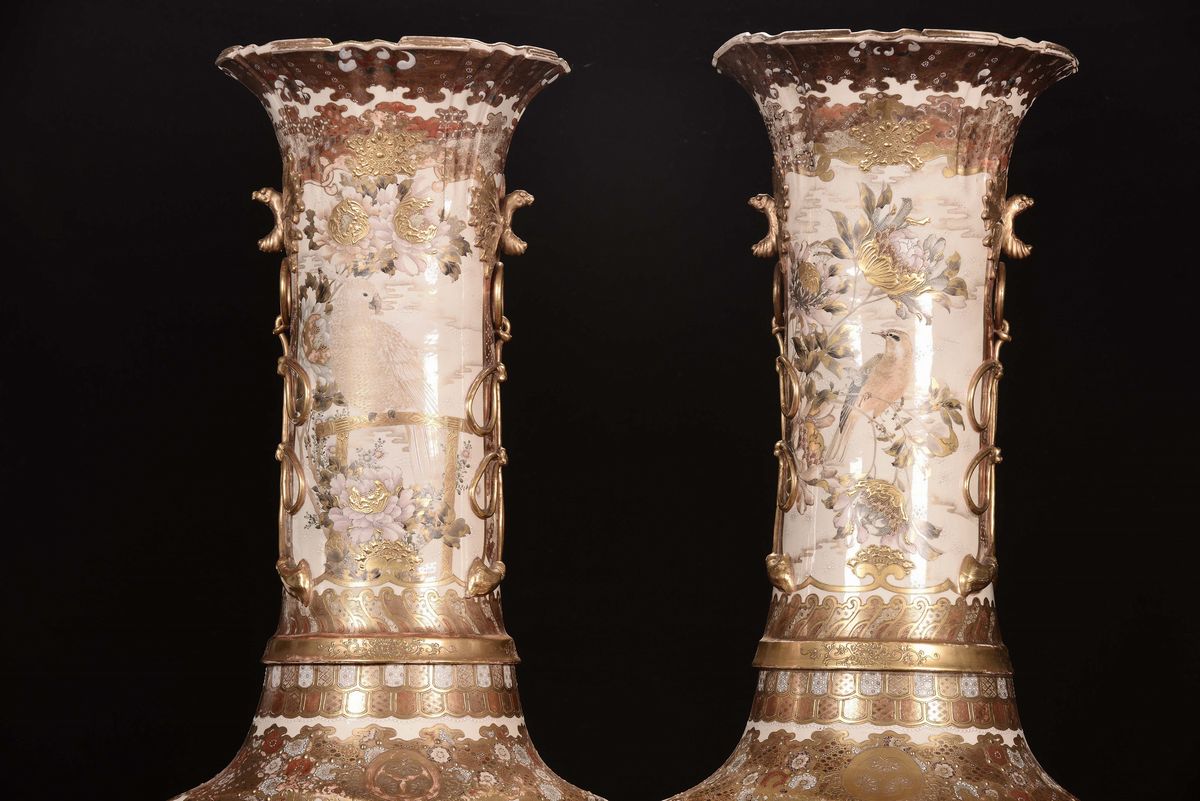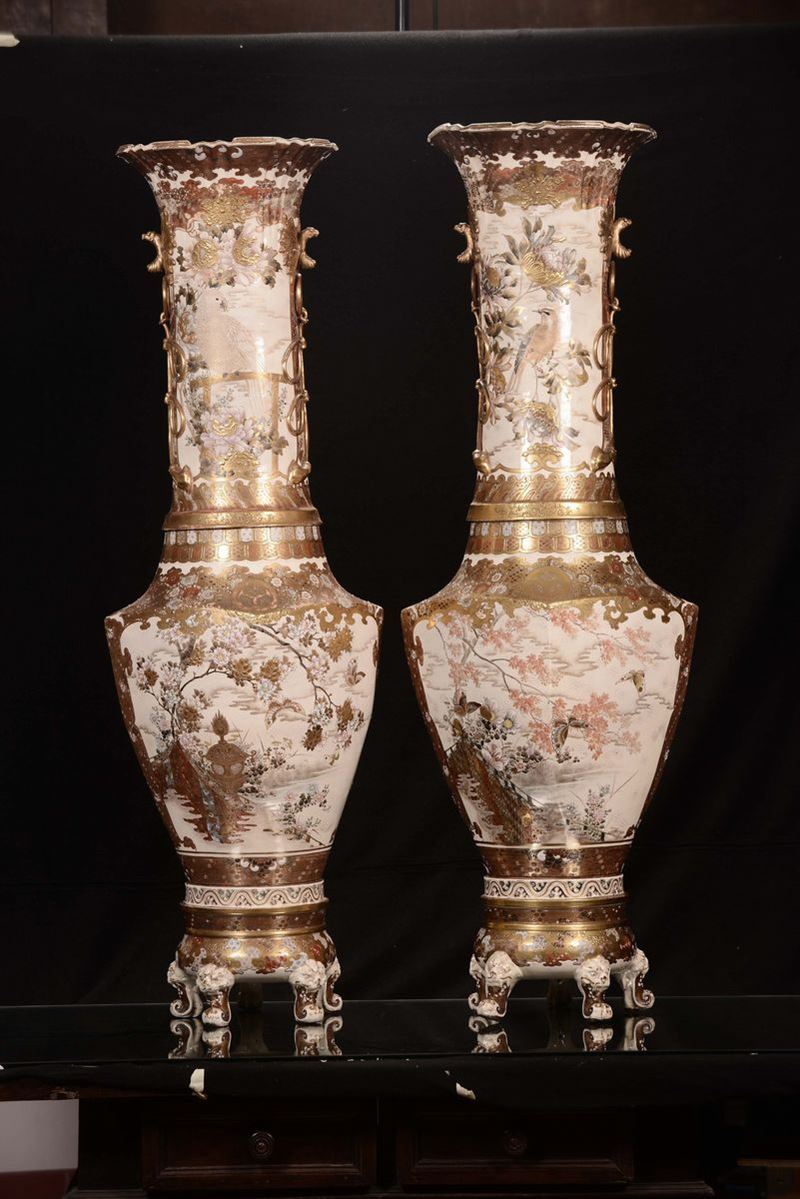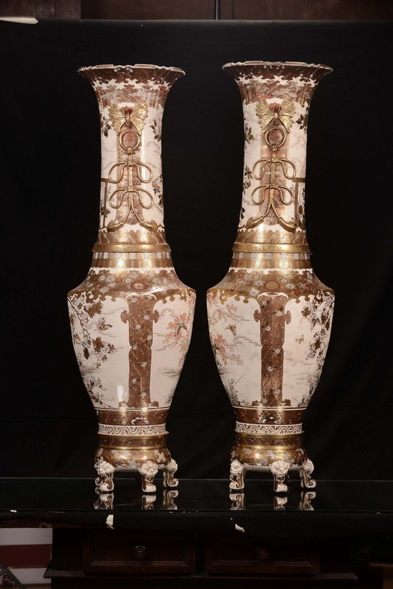 Coppia di vasi in porcellana policroma con paesaggi orientali, Saztuma, Giappone, XIX secolo