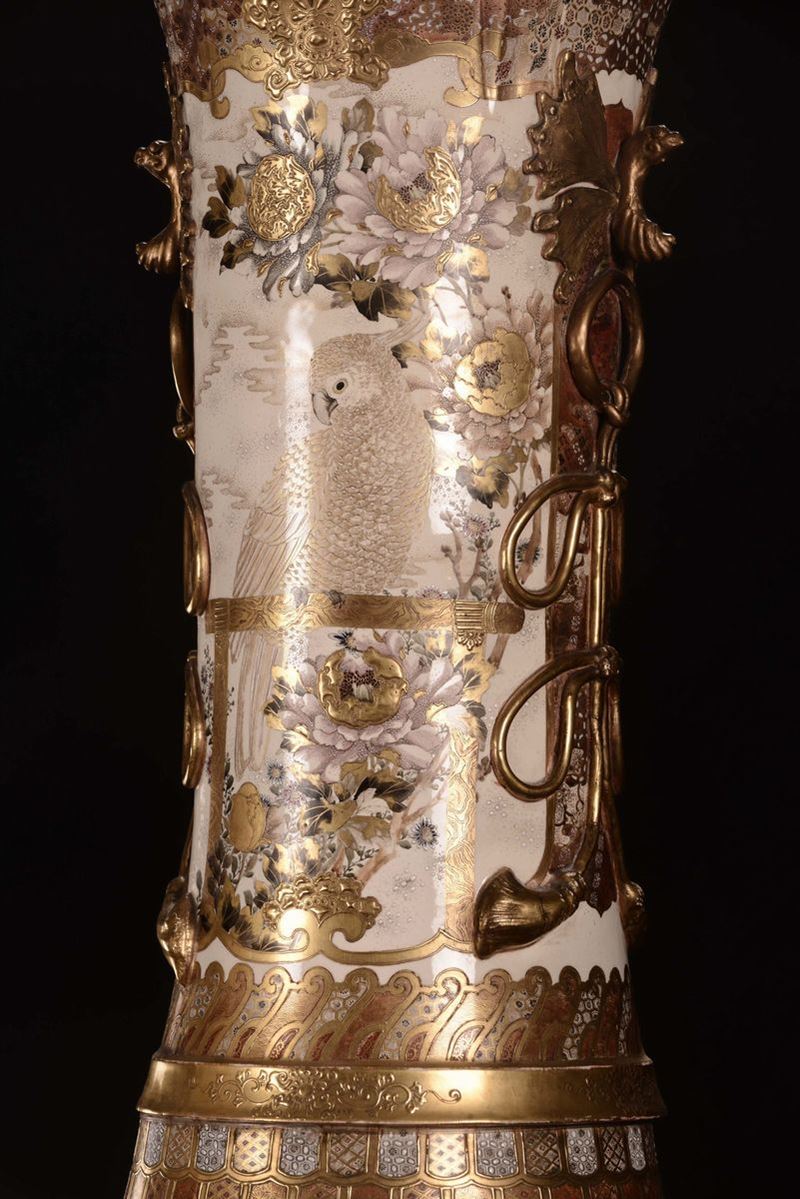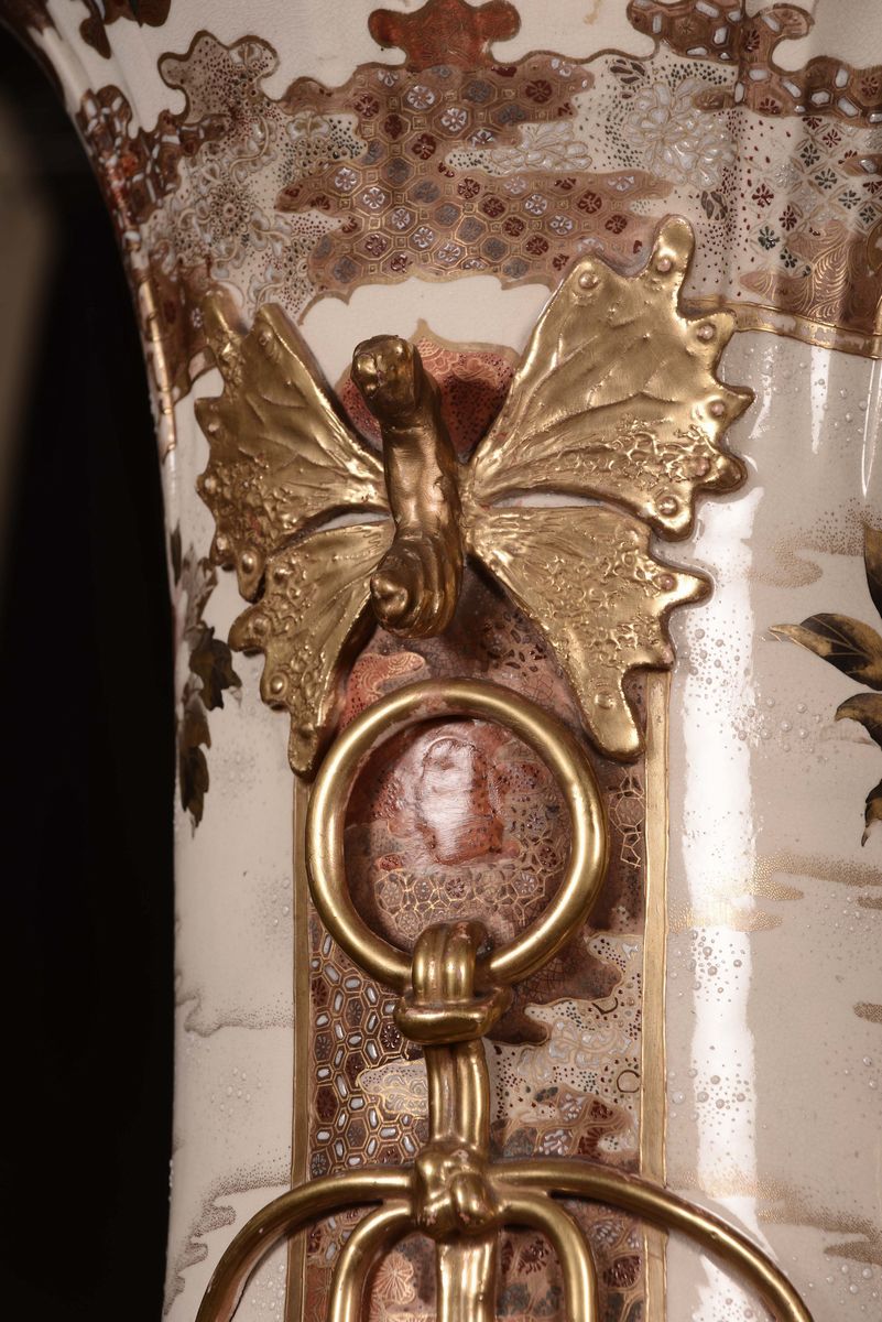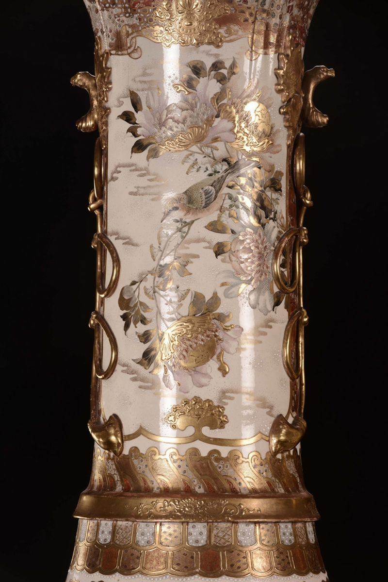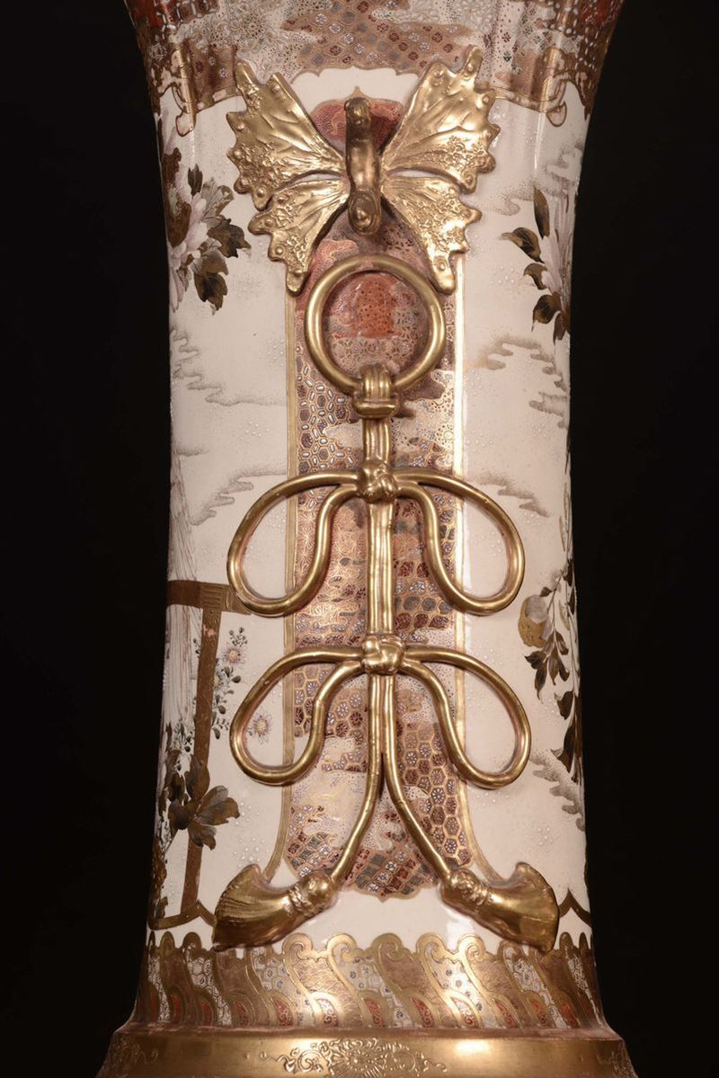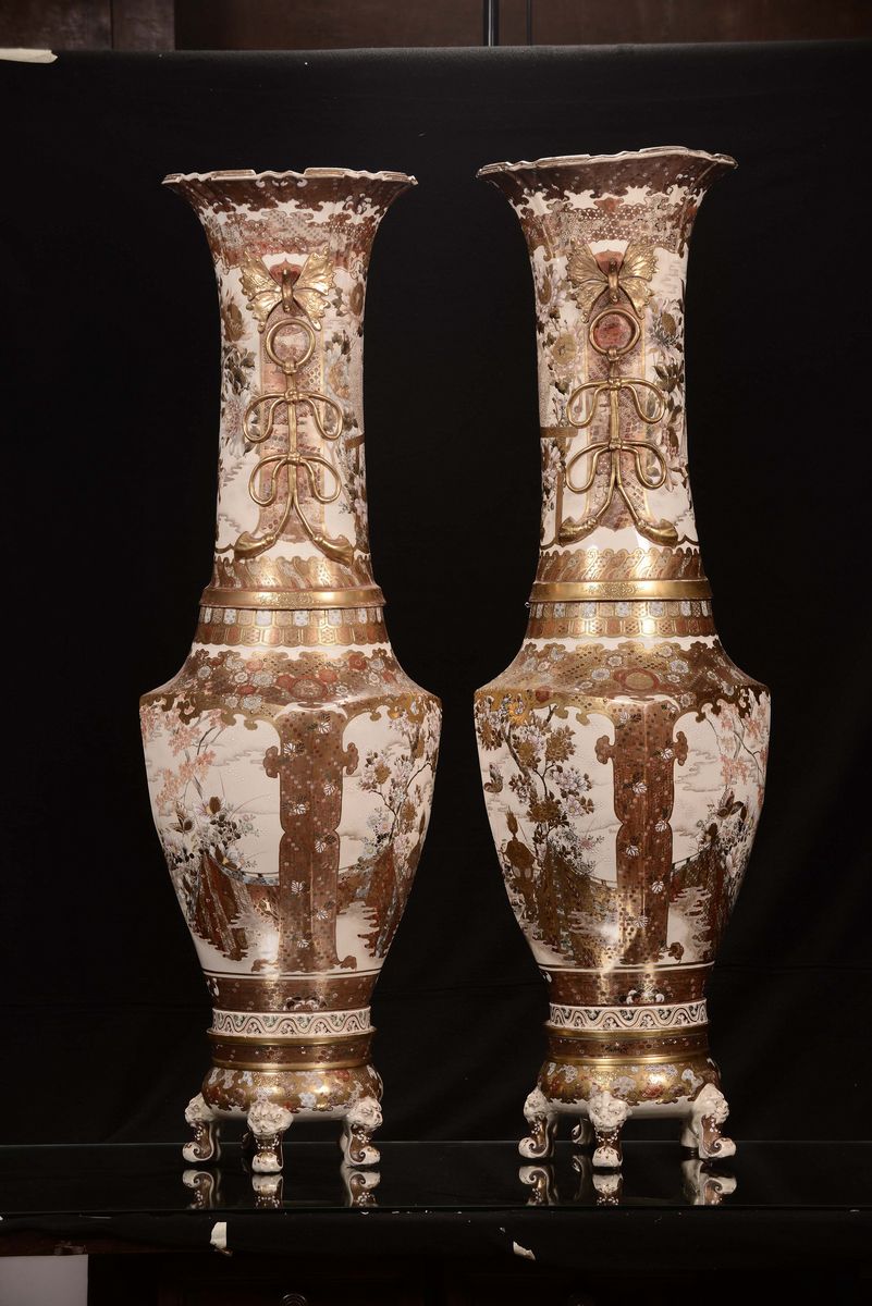 Coppia di vasi in porcellana policroma con paesaggi orientali, Saztuma, Giappone, XIX secolo