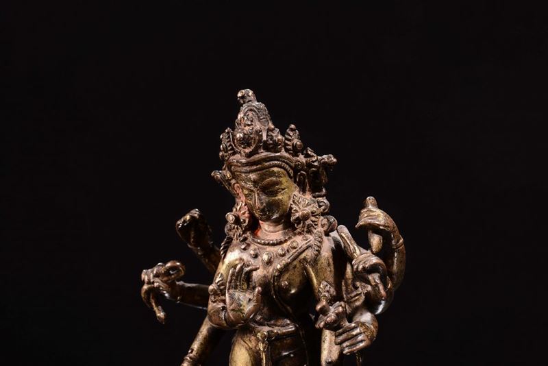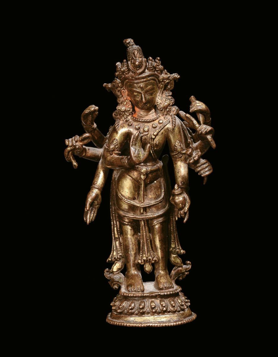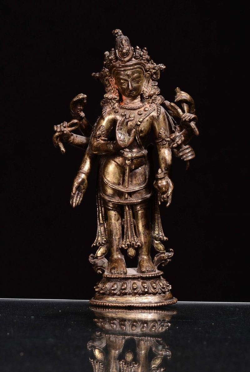 Divinità otto braccia bronzo dorato, dinastia Ming, fine secolo XVII