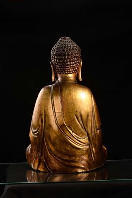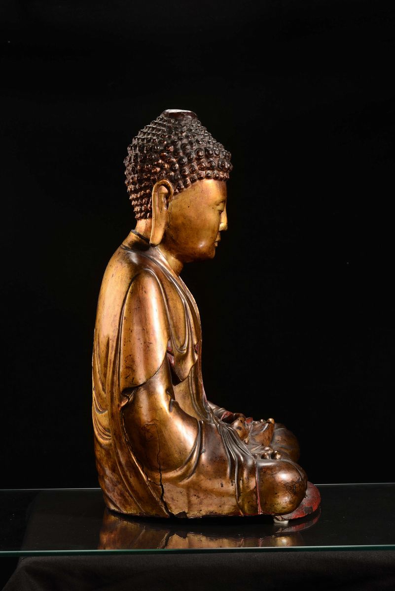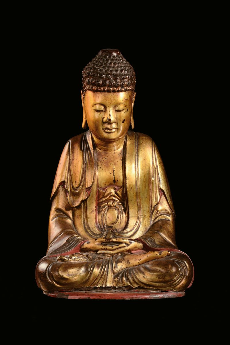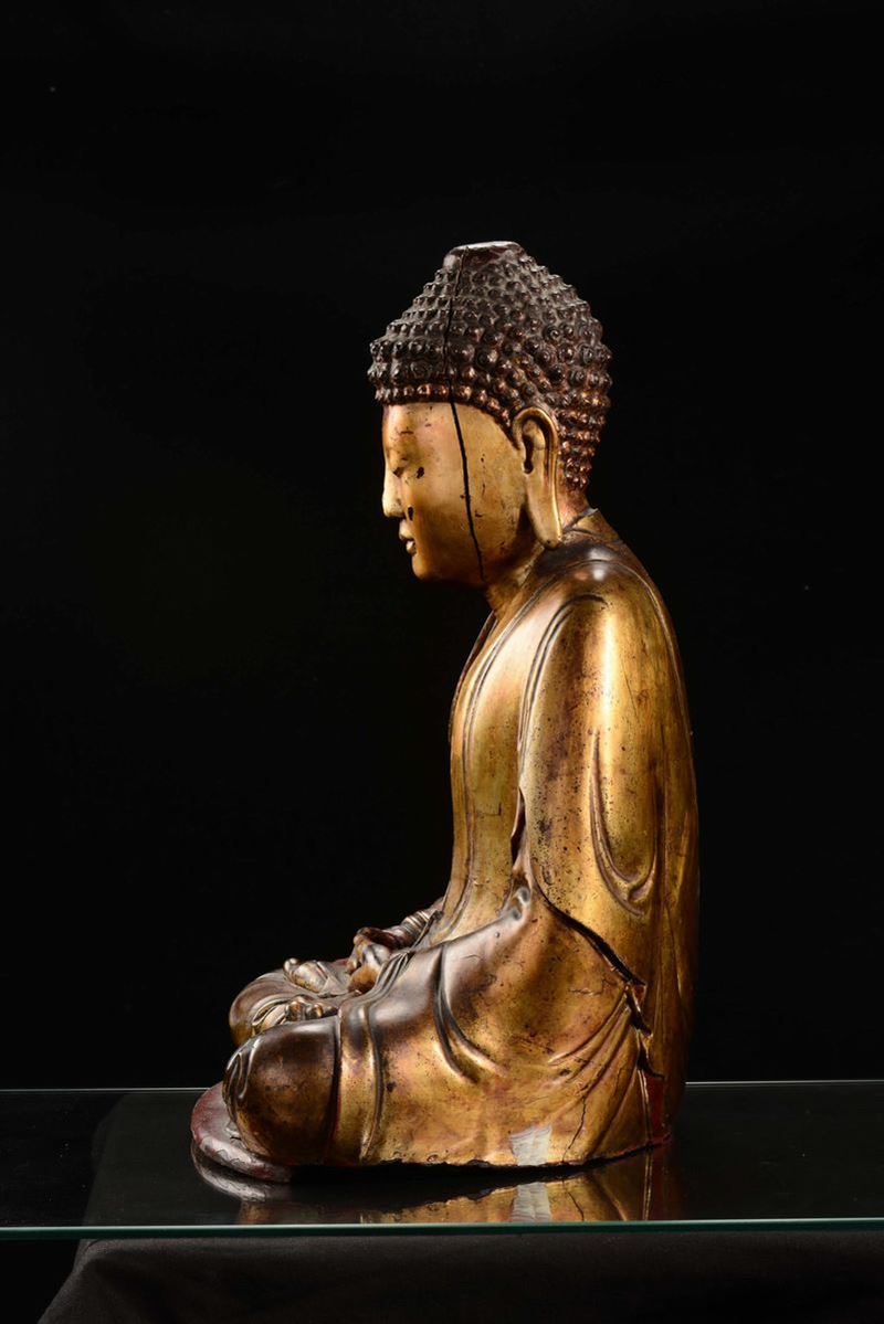 Figura di Buddha in legno dorato, Cina, Dinastia Qing, XVIII secolo