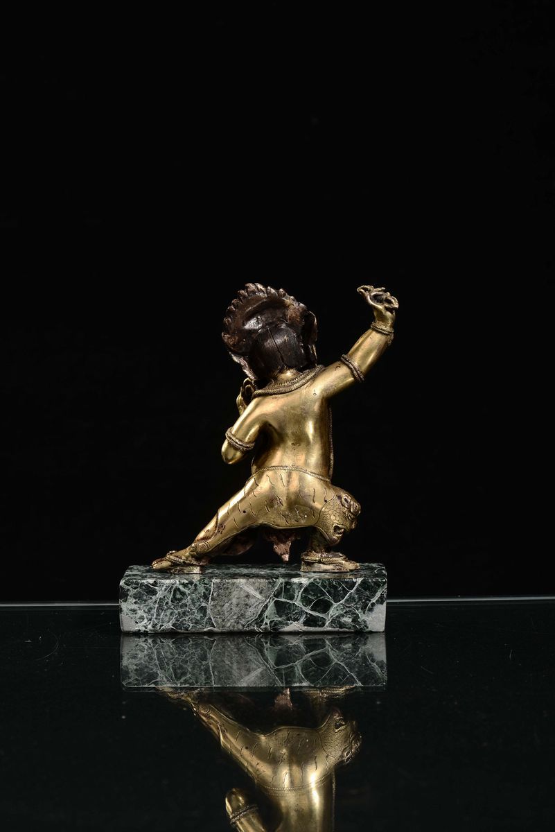 Hayagriva in bronzo dorato con applicazioni in pietre dure su base in marmo, Cina, Dinastia Qing, XIX secolo