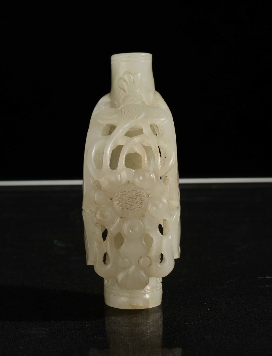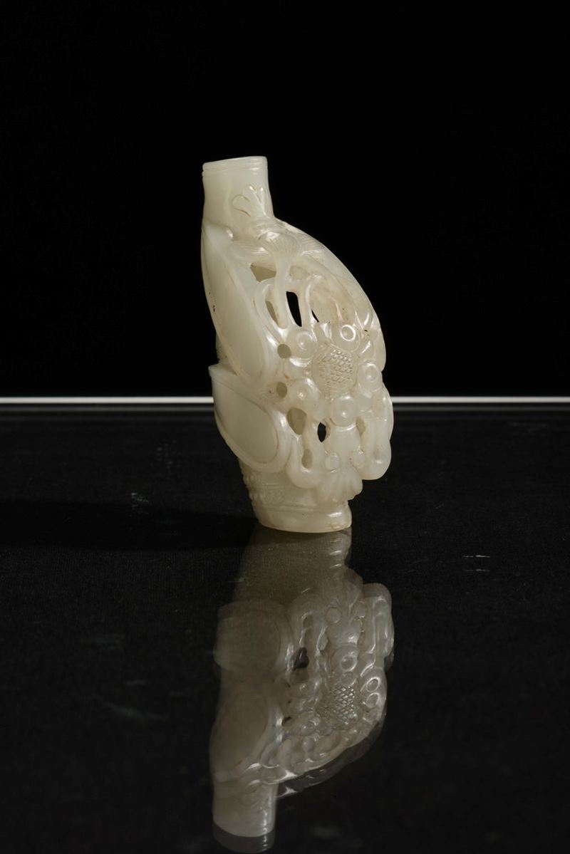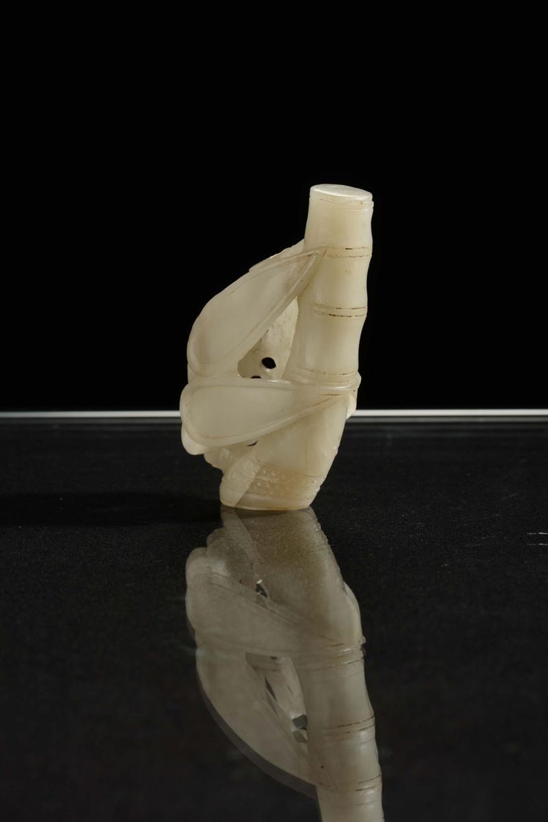 Piccola snuff bottle a guisa di ramo di bambù in giada bianca, Cina, Dinastia Qing, XIX secolo