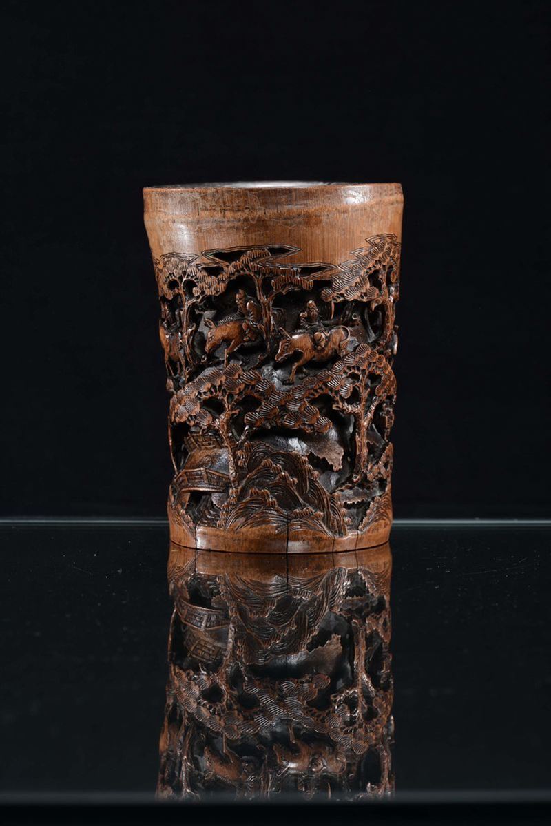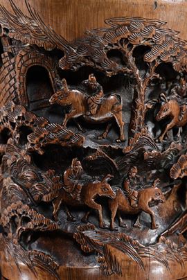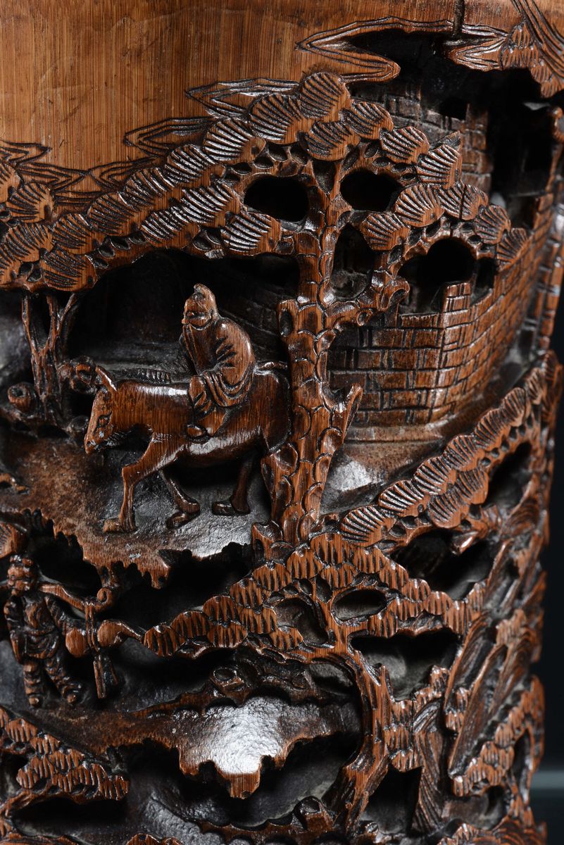 Portapennello in bamboo finemente intagliato, Cina, Dinastia Qing, XVIII secolo