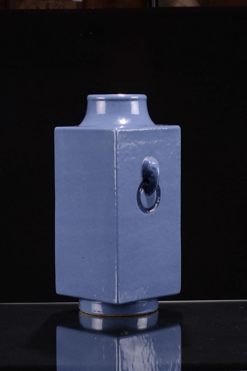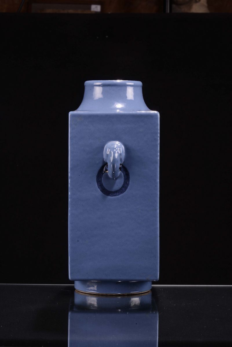Vaso Kong in porcellana monocroma blu, marca apocrifa Quianlong, Cina, Dinastia Qing, XIX secolo