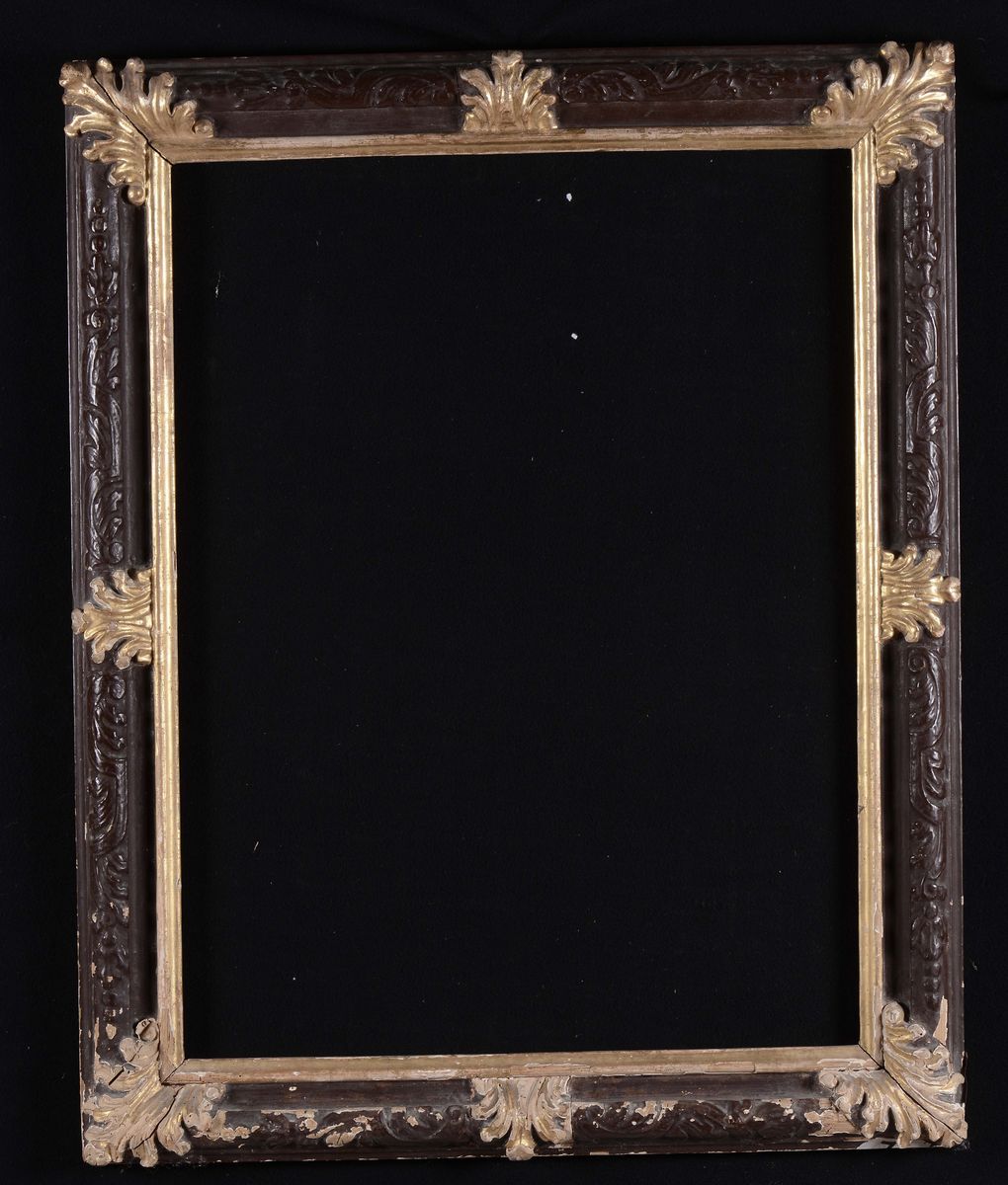 Coppia di specchierine in legno laccato marrone e oro, XVIII secolo