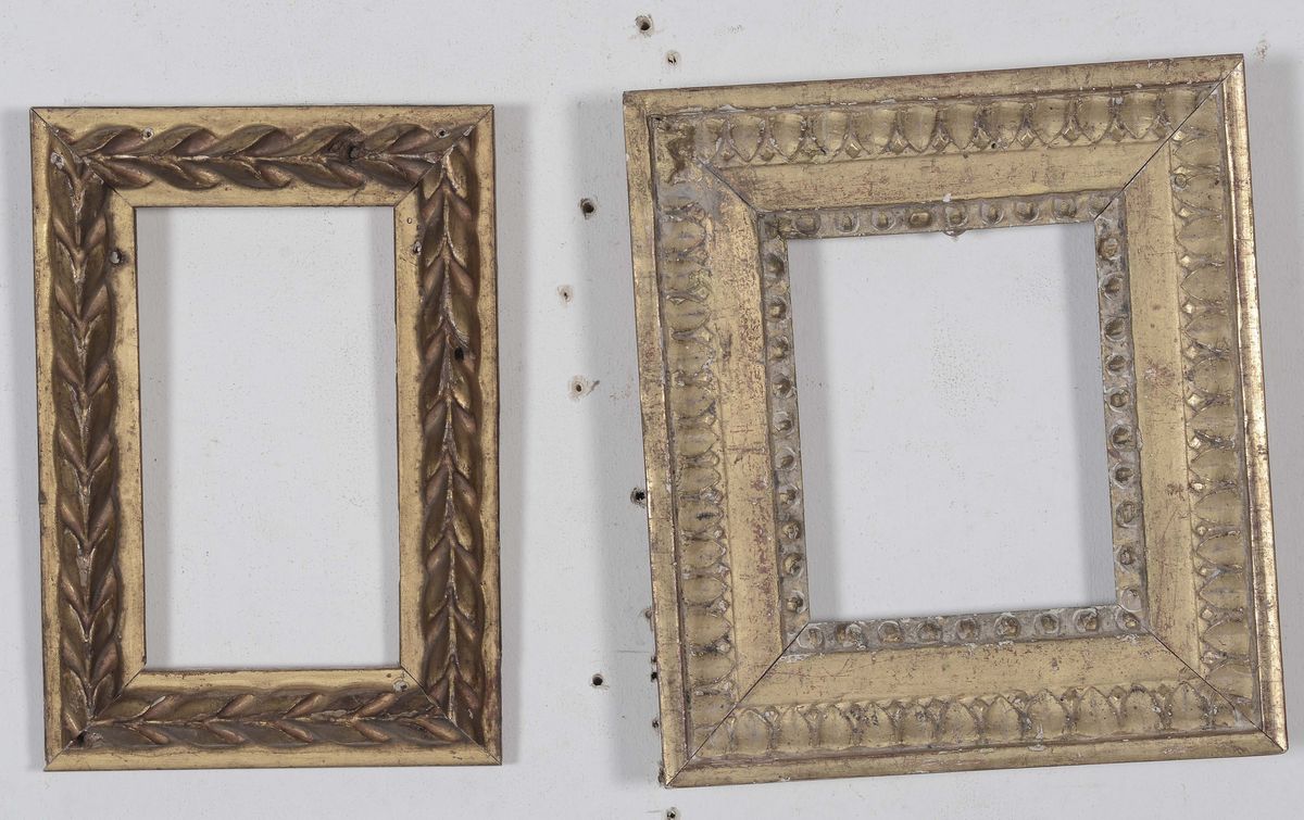 Lotto di dieci cornici in legno dorato di varie dimensioni e decorazioni