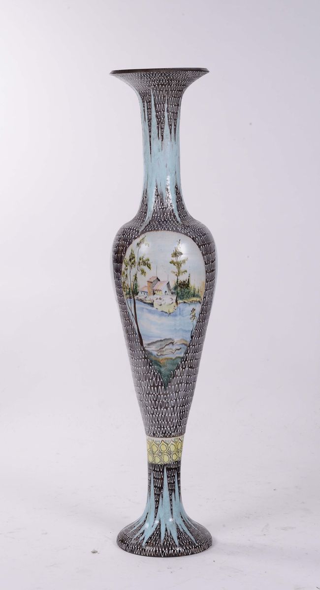 Alto vaso Liberty a forma di tromba in ceramica, Venezia fine XIX secolo