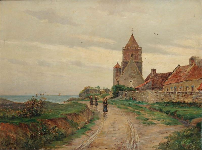 olio su tela, cm 96x126, firmato e datato in basso a sinistra A.Gross 1901