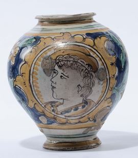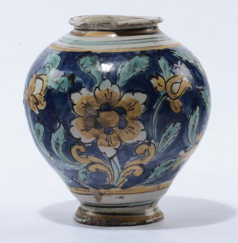 Boccia di farmacia in mailica policroma, Caltagirona XVIII secolo