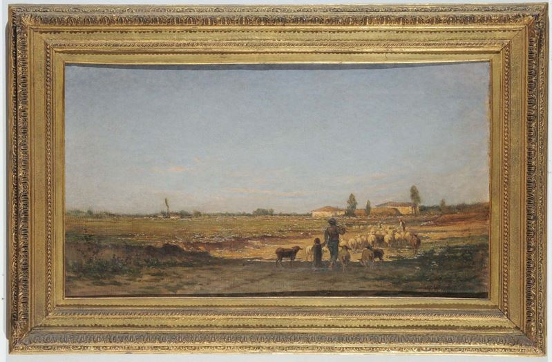 Carlo Follini (Domodossola 1848 - Genova Pegli 1938) Paesaggio con pastori