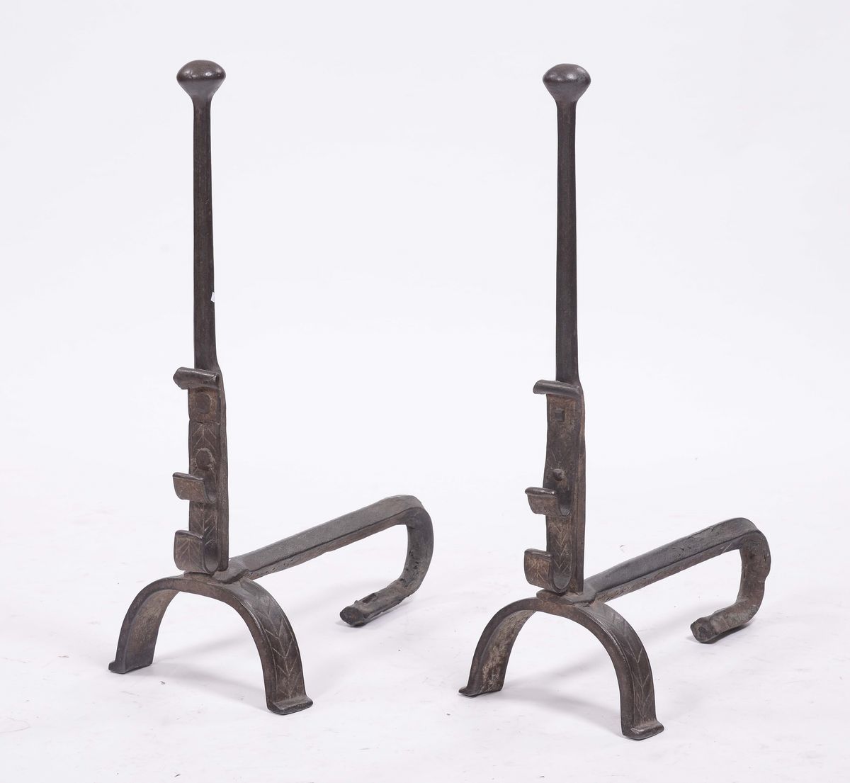 Coppia di alari in ferro battuto, XVIII secolo
