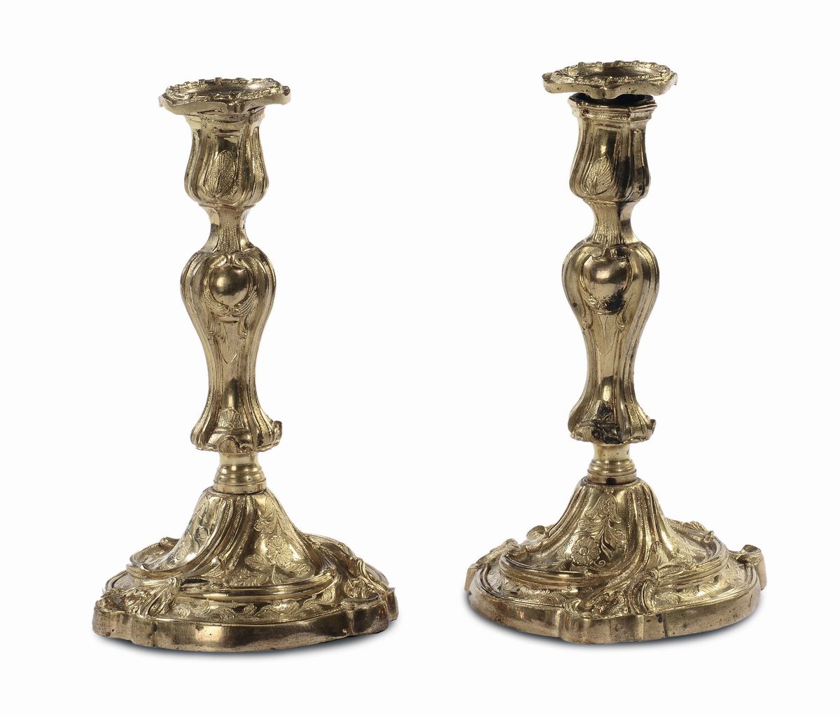 Coppia di candelieri in bronzo dorato, XIX secolo