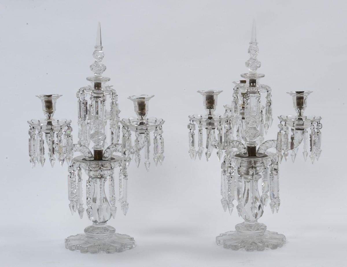 Coppia di girandoles a tre bracci in vetro, XIX secolo