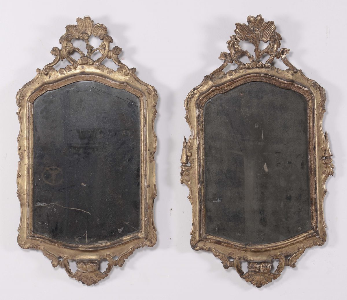 Coppia di specchierine in legno dorato, Venezia XVIII secolo