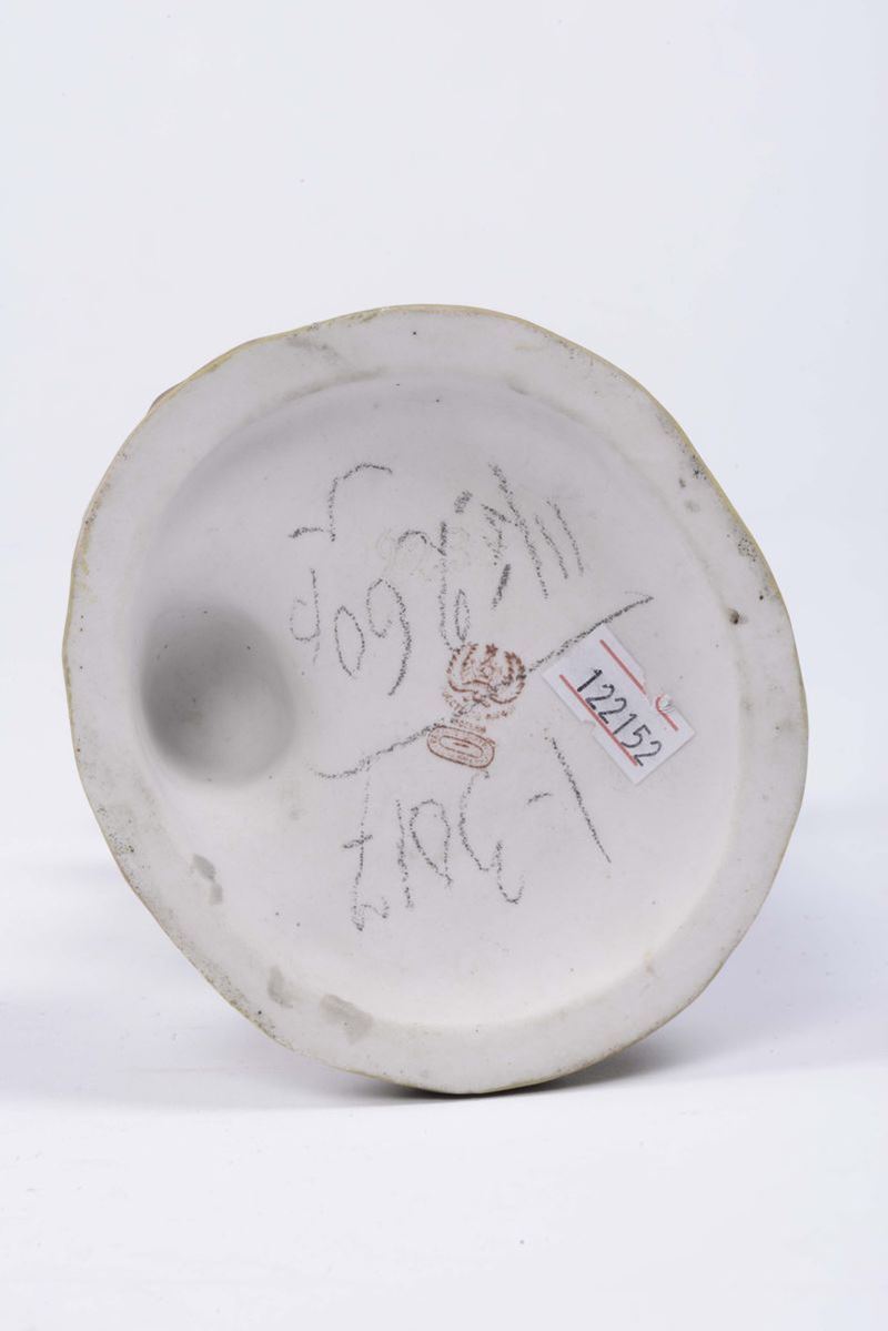 Figura in biscuit raffigurante giovane contadina che allatta, Russia, manifattura Gardner, XIX secolo