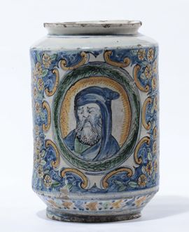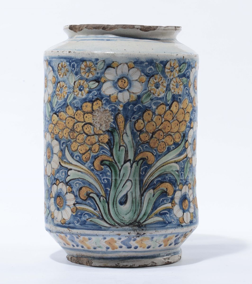 Grande albarello in maiolica policroma, Caltagirone XVIII seoclo