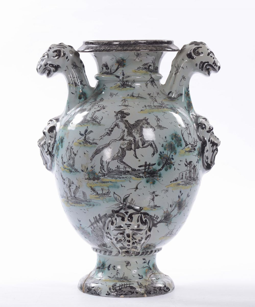 decori di paesaggi, personaggi ed animali, macheoni in rilievo, altezza cm 33