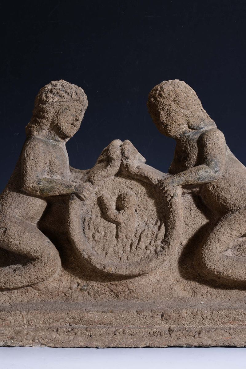 gruppo in pietra, altezza cm 47, larghezza cm 63
