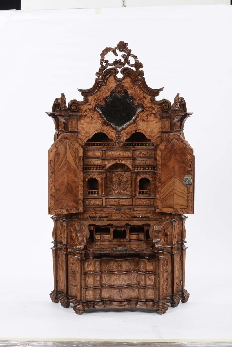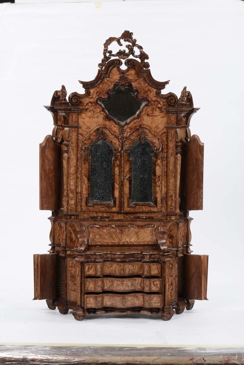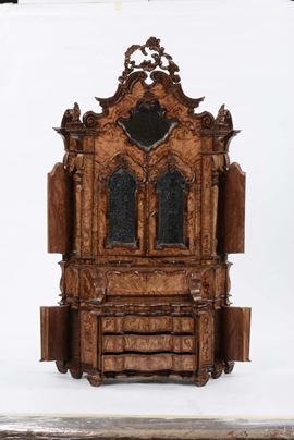 Modellino di trumeau Luigi XV in radica di ulivo, XVIII secolo