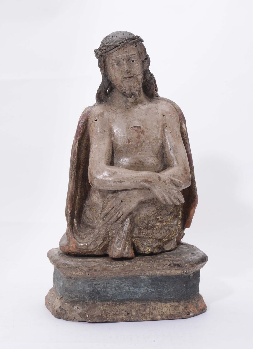 Piccola scultura in legno policromo raffigurante Ecce Homo, Napoli XVII secolo